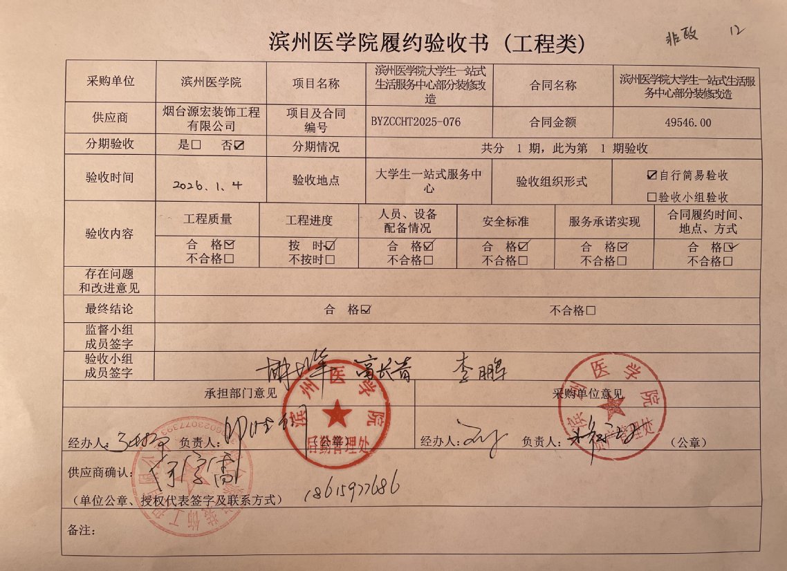 滨州医学院大学生一站式生活服务中心部分装修改造