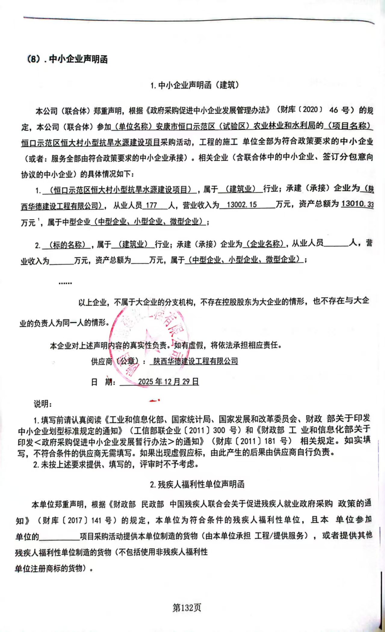 恒口示范区恒大村小型抗旱水源建设项目中标(成交)结果公告