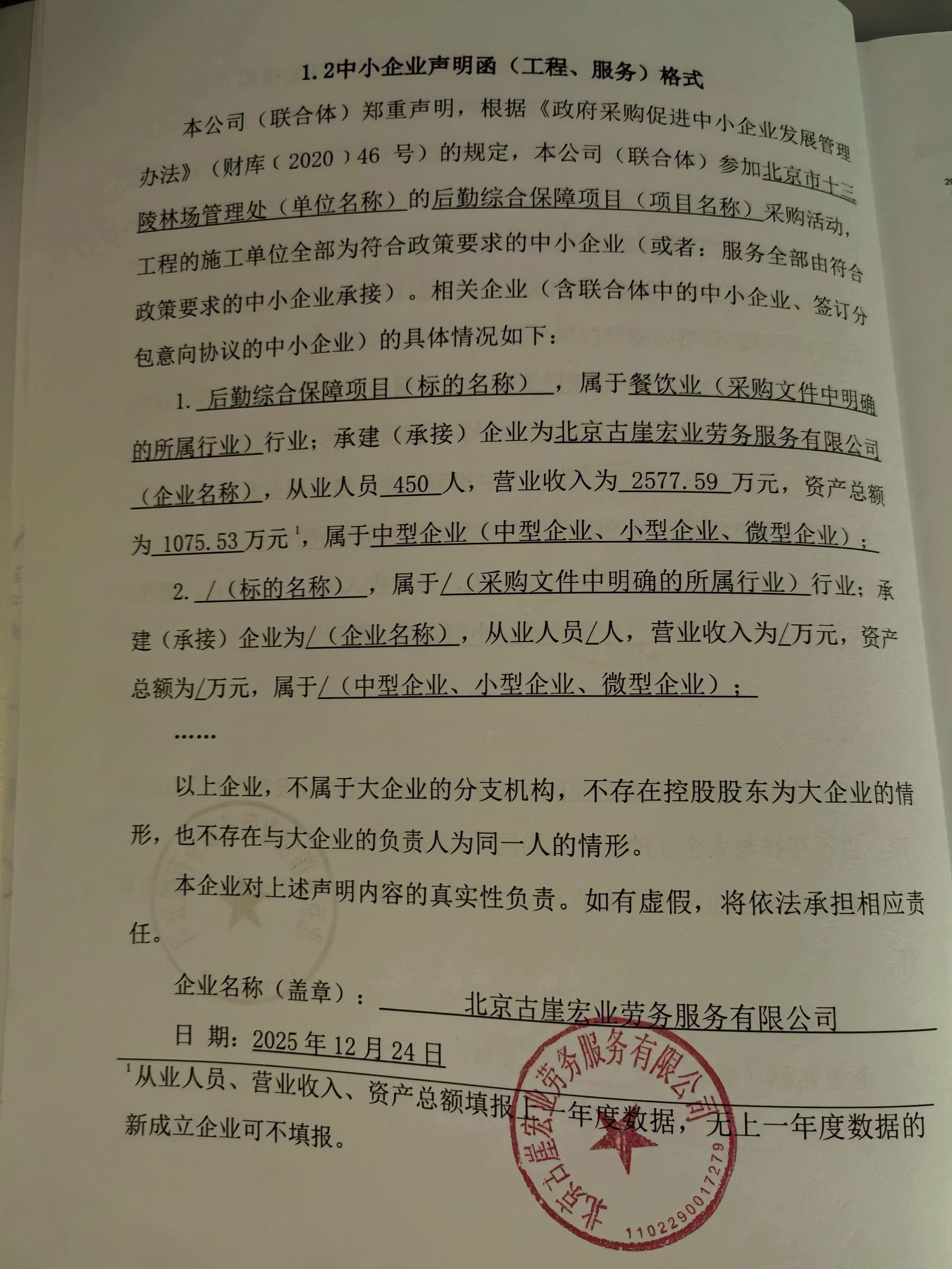 北京古崖宏业劳务服务有限公司最终评审得分:**.**