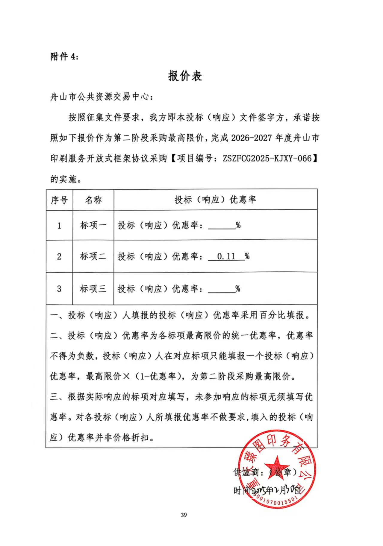 项目名称:*********年度舟山市印刷服务开放式框架协议采购项目