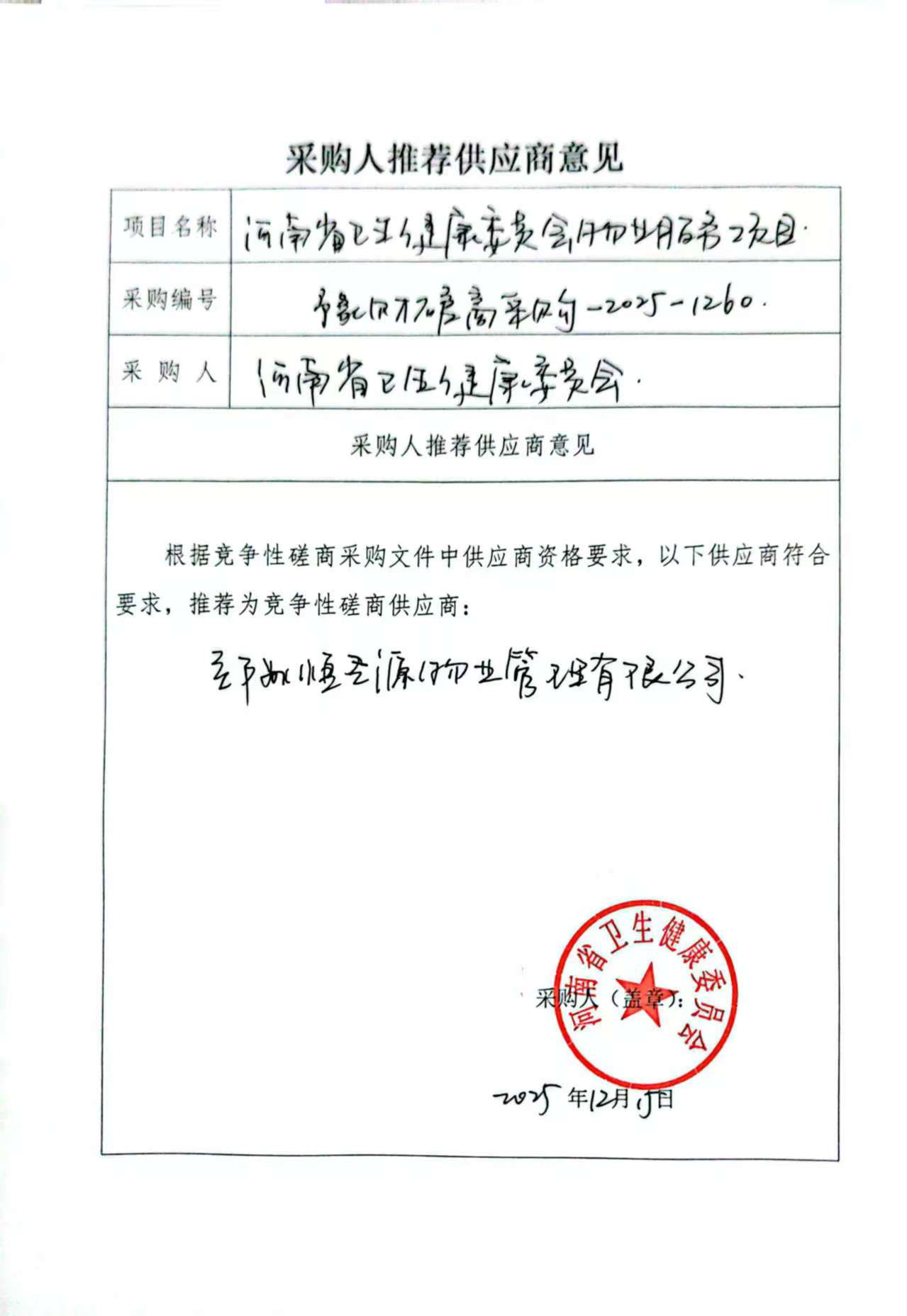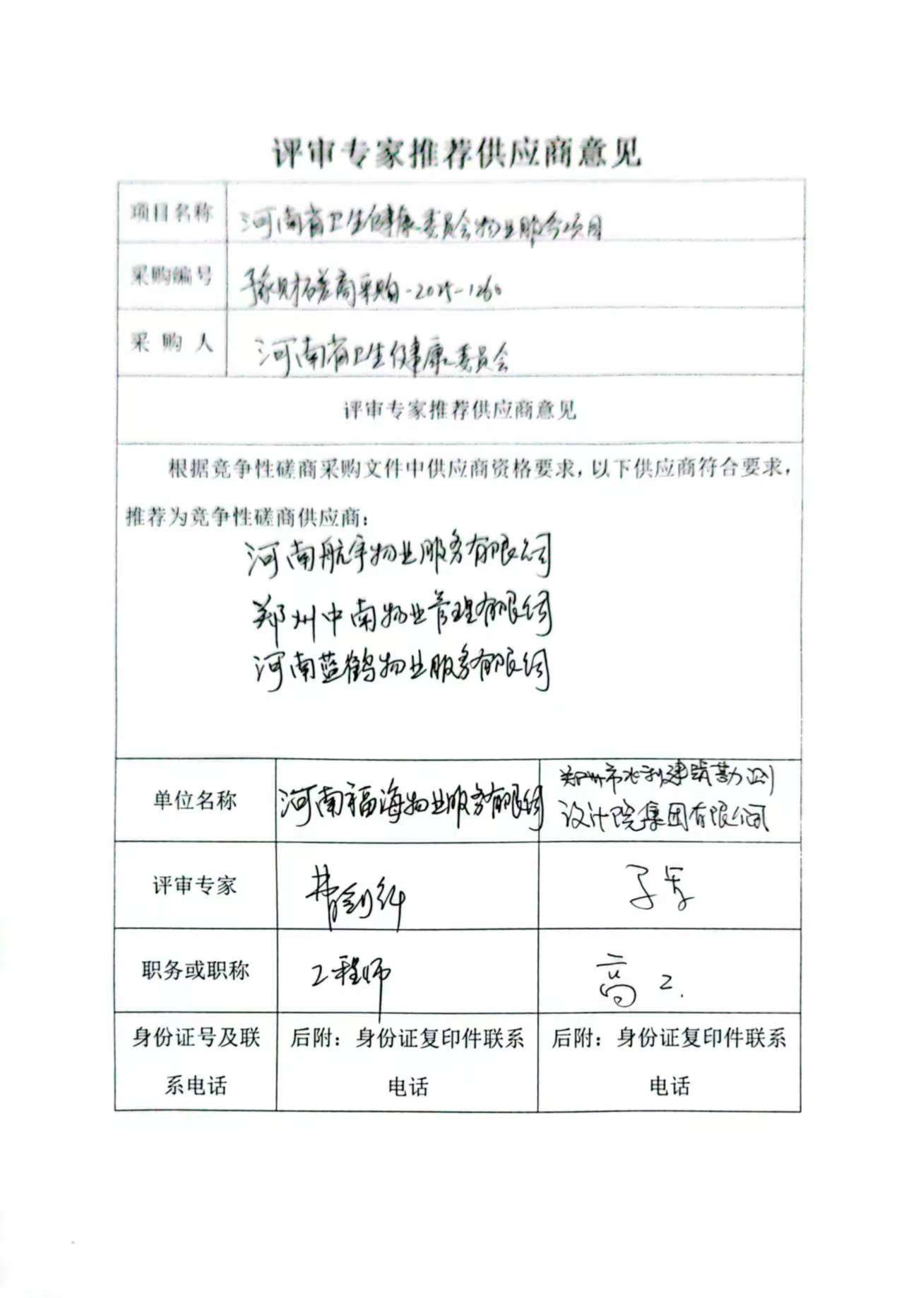 河南省卫生健康委员会物业服务项目-成交公告