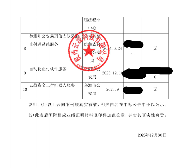 服务时间:大数据涉网新型行为分析系统数据查询服务*年、大数据辅助分析系统数据查询服务*年,止付系统*年。