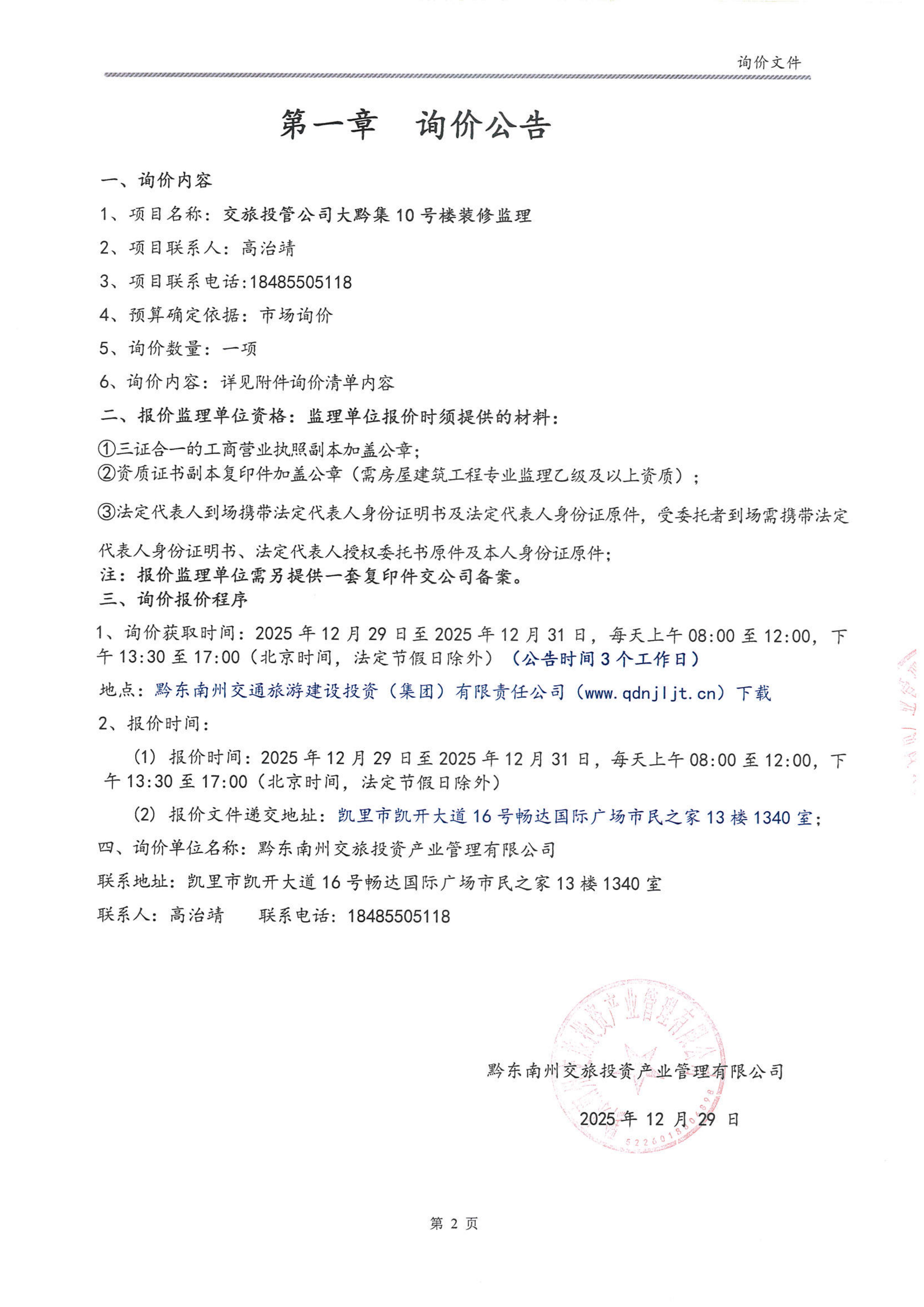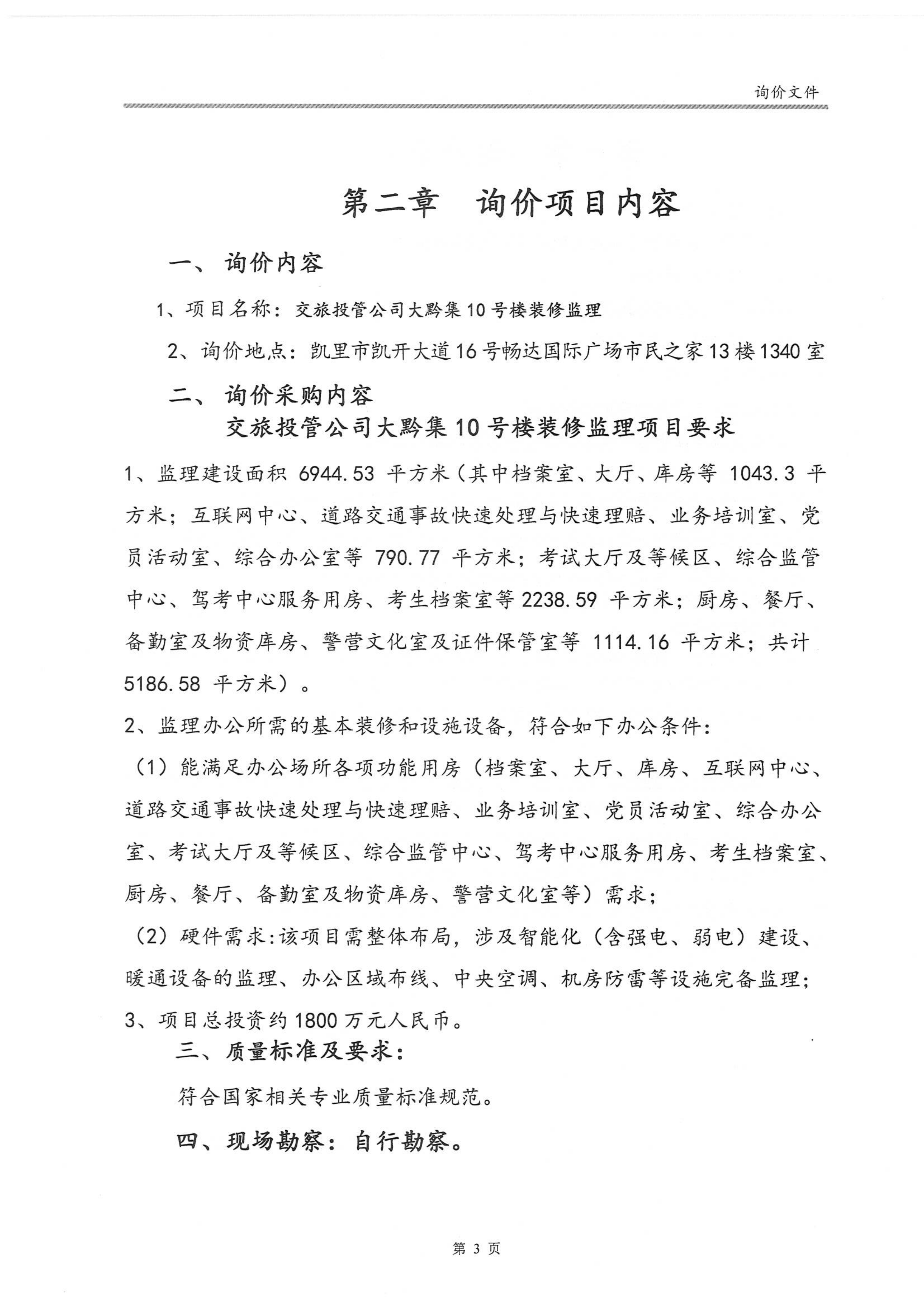 交旅投管大黔集10号楼装修工程监理服务询价公告