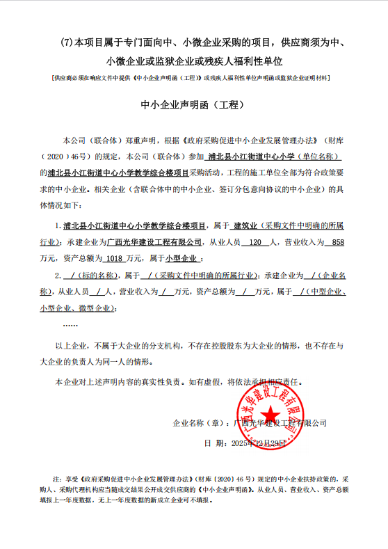 广西唯琪工程项目管理有限公司关于浦北县小江街道中心小学教学综合楼项目(项目编号:QZZC2025-C2-220270-WQGC)成交公告