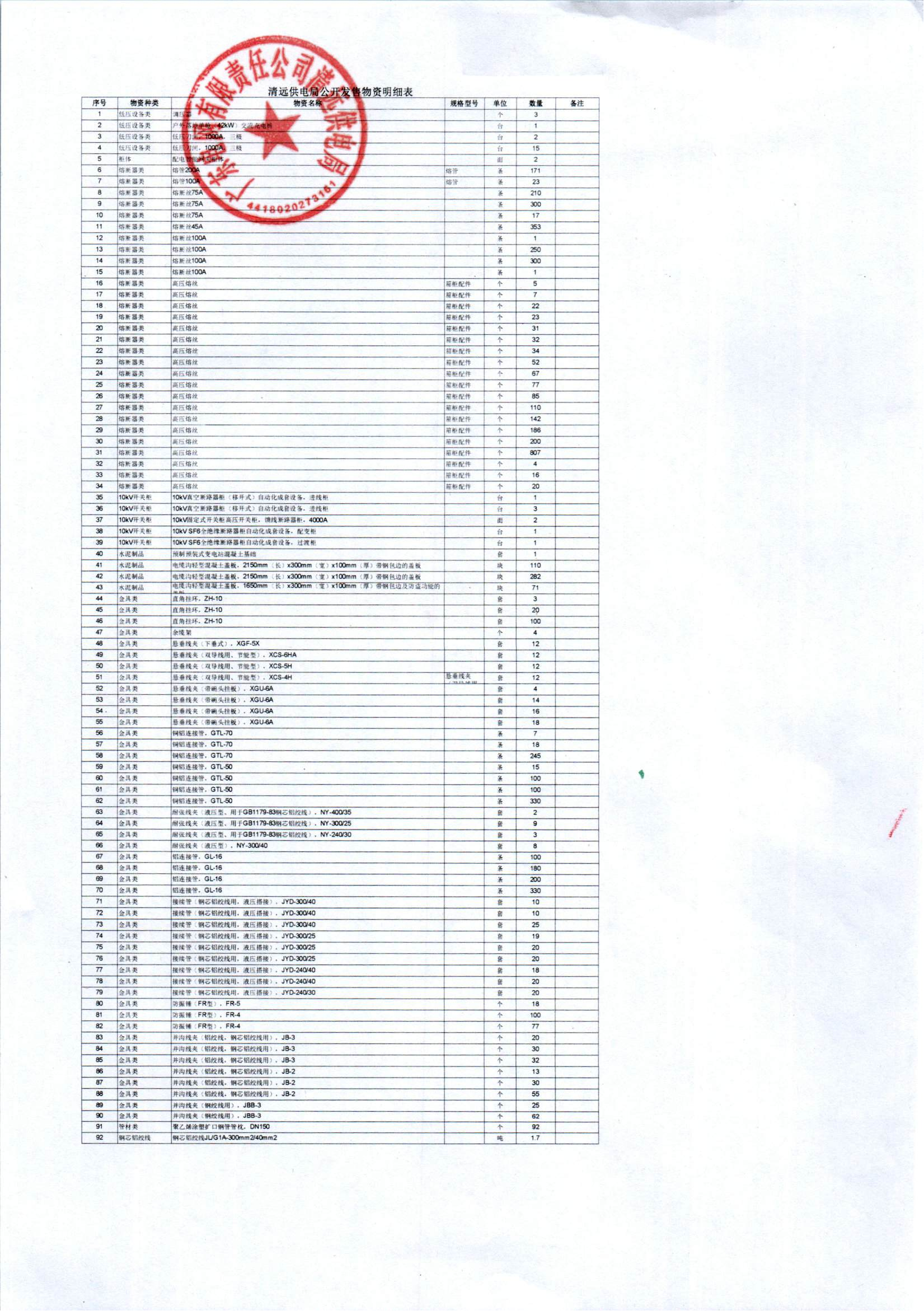 | 标的名称 | 广东电网有限责任公司清远供电局持有的一批物资 |