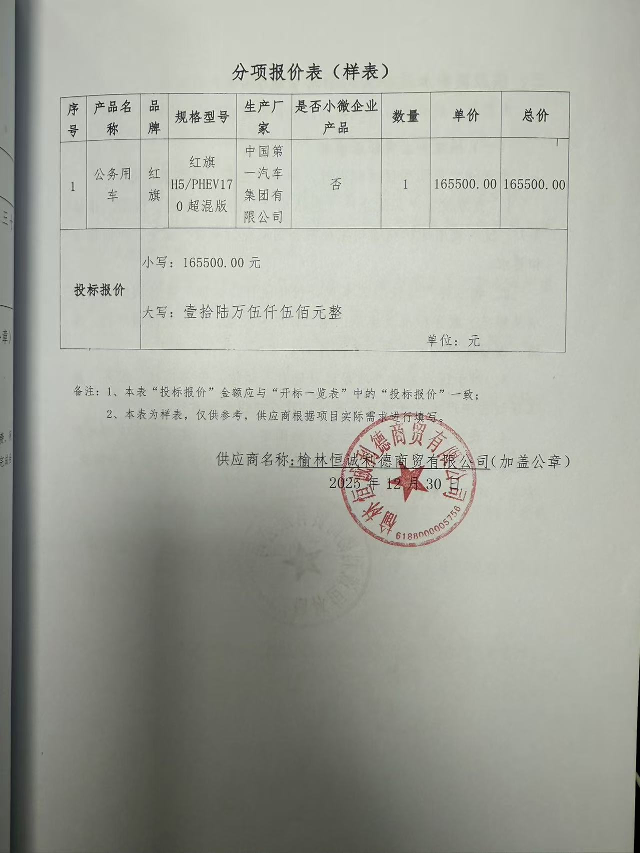 榆林市畜牧兽医局公务用车购置货物采购项目中标(成交)结果公告