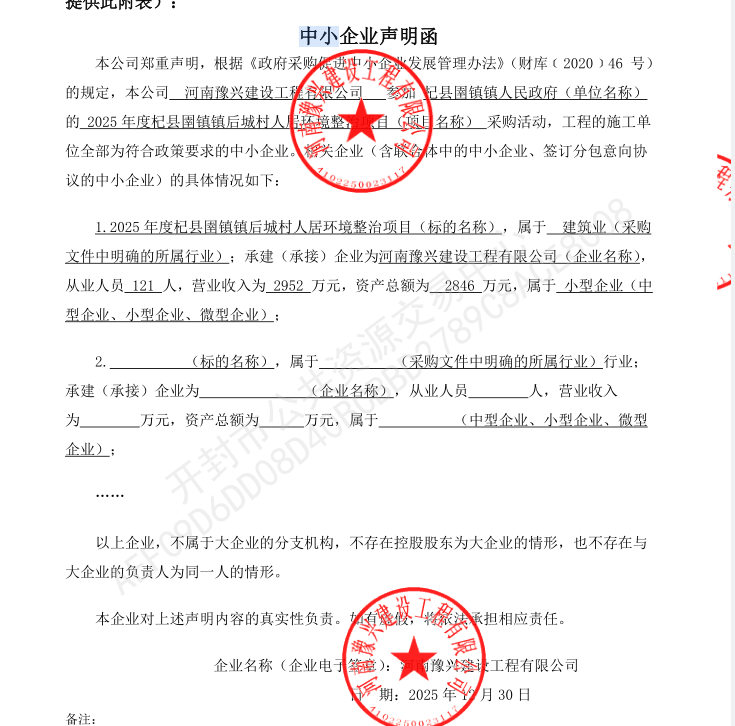 杞县圉镇镇人民政府2025年度杞县圉镇镇后城村人居环境整治项目-成交公告