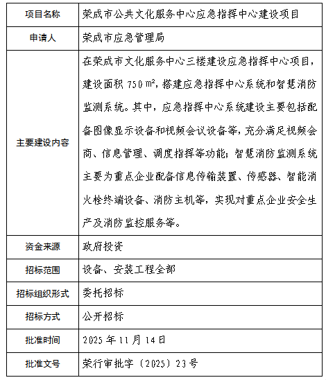 荣成市人民政府 公告公示 荣成市公共文化服务中心应急指挥中心建设项目招标投标核准结果公示
