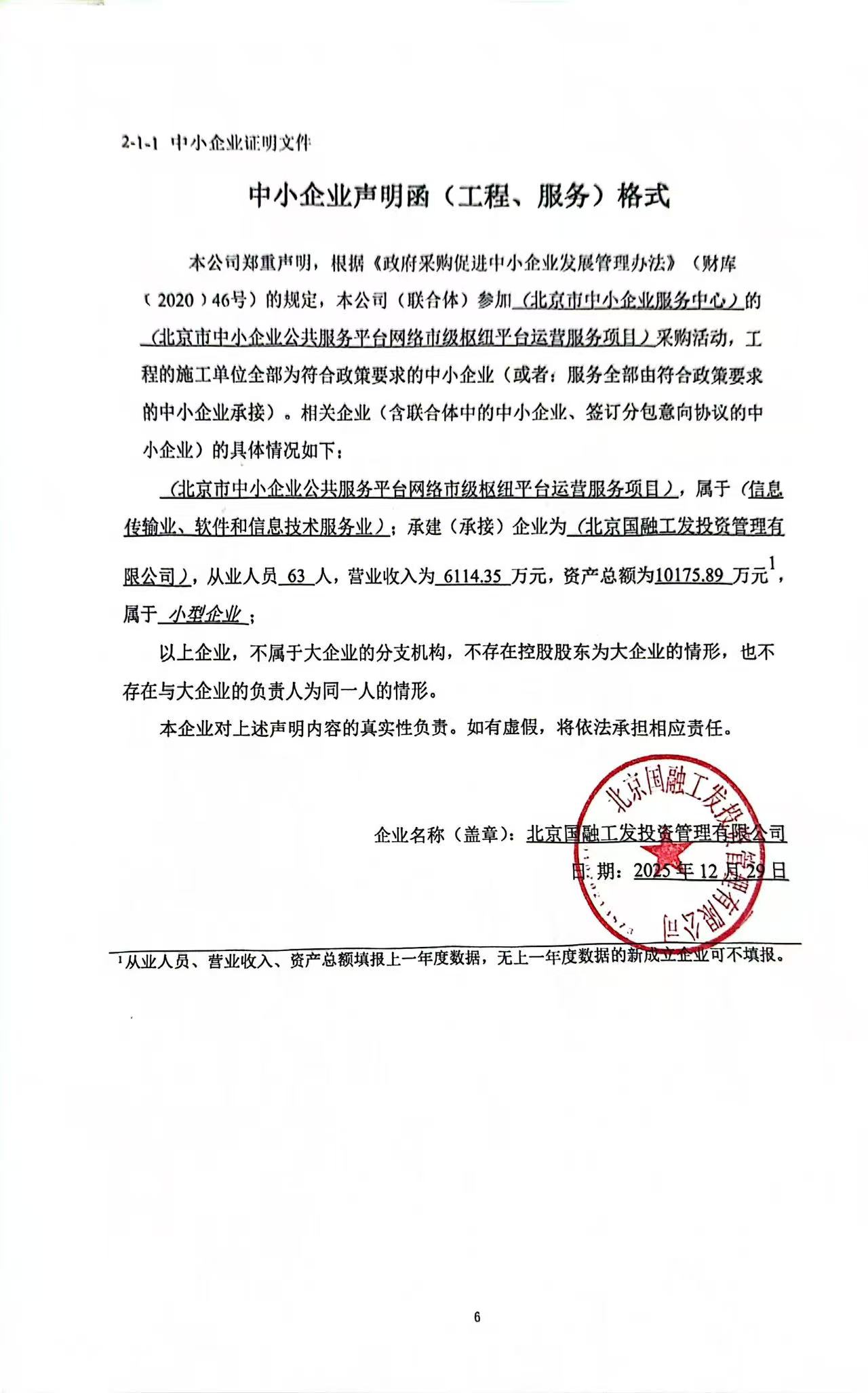 | 北京国融工发投资管理有限公司 | 北京市中小企业公共服务平台网络市级枢纽平台运营服务项目 | 不适用 | * | ***万元 | ***万元 | 详见采购文件 |