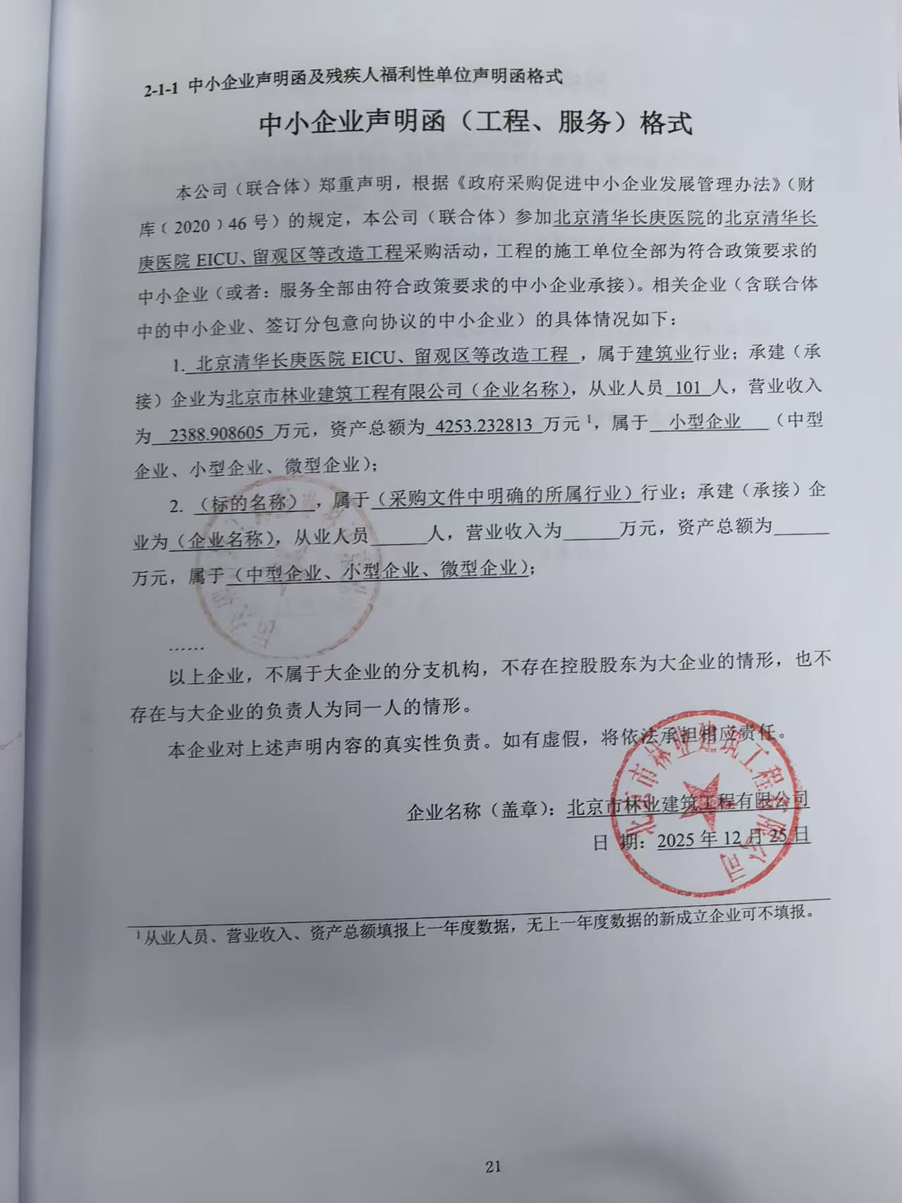 [磋商]北京清华长庚医院EICU、留观区等改造工程第1包成交公告
