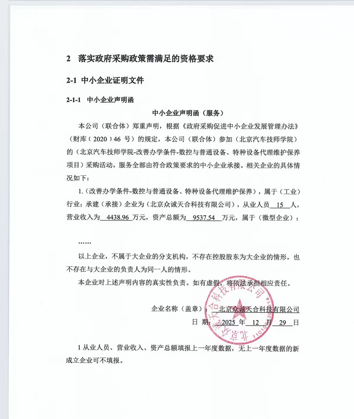 中标成交供应商名称:北京众诚天合科技有限公司