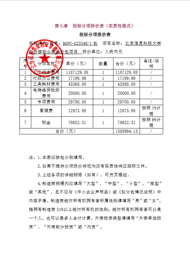 二、项目名称:北京信息科技大学办公楼物业服务外包项目