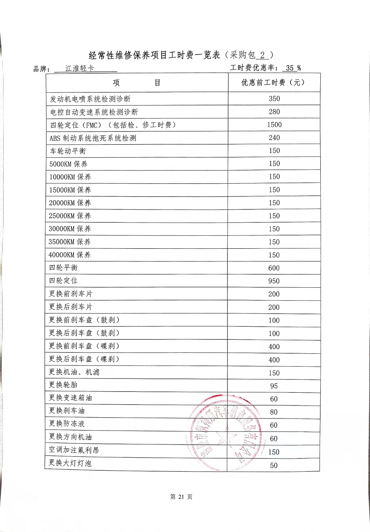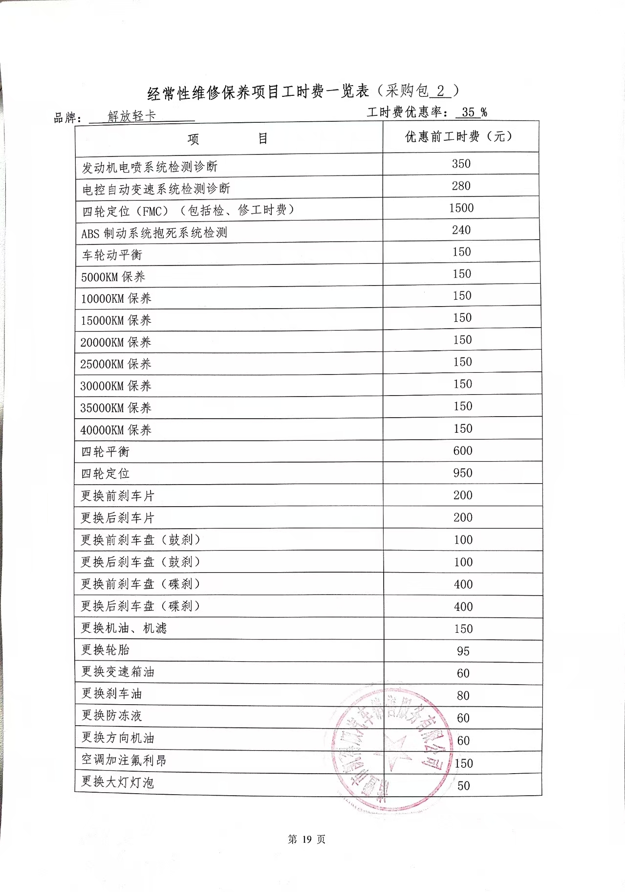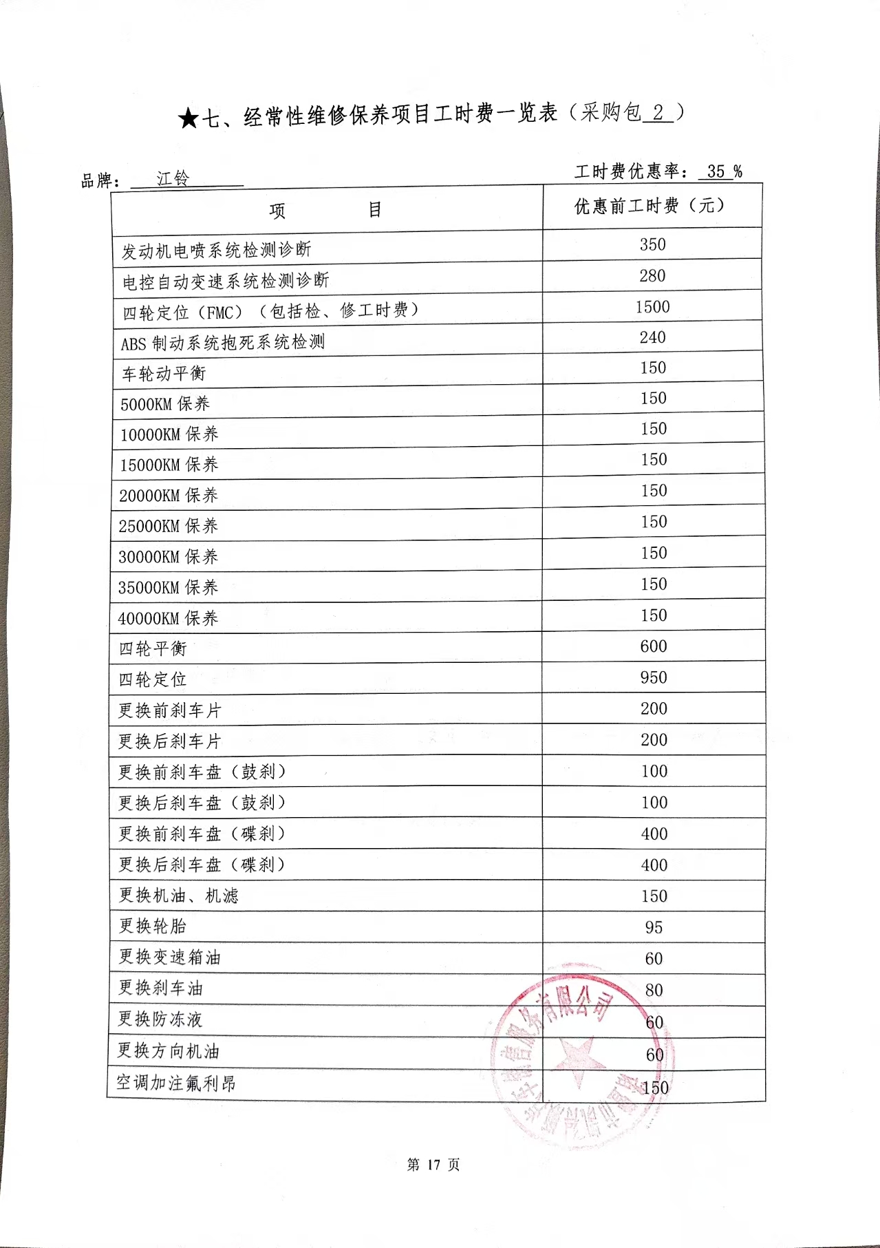 经常性维修保养项目工时费览表:工时费览表 (*).***