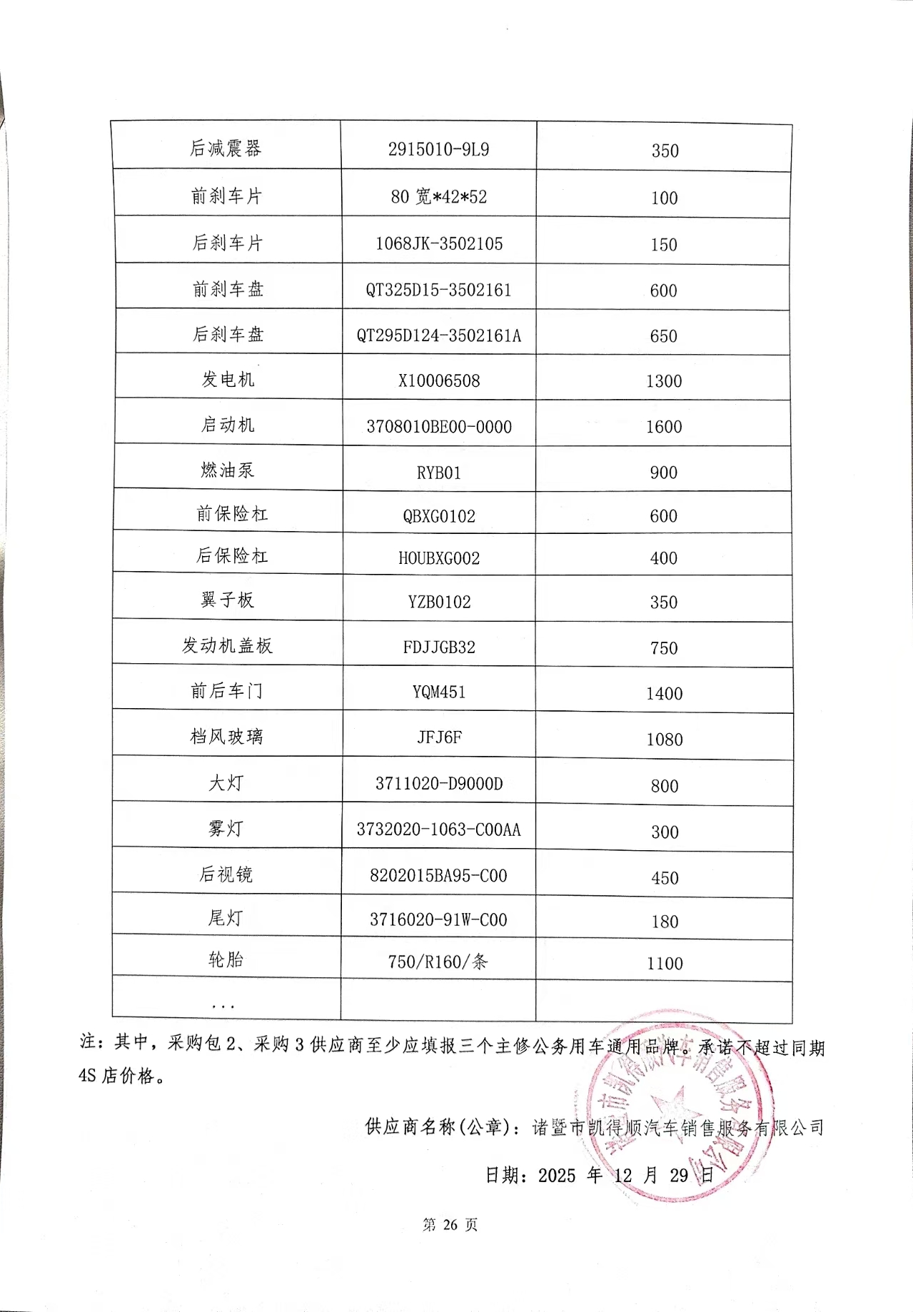 供应商名称:诸暨市凯得顺汽车销售服务有限公司
