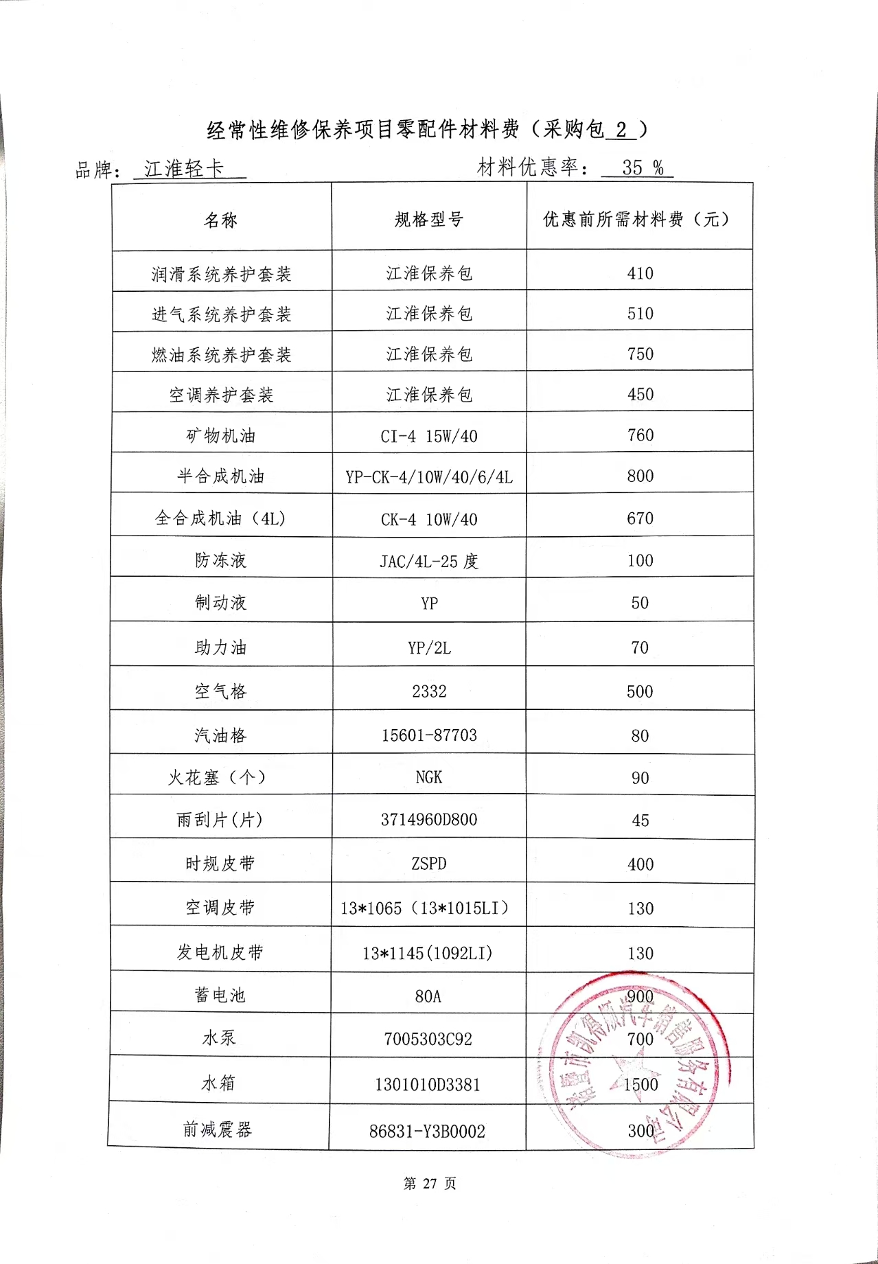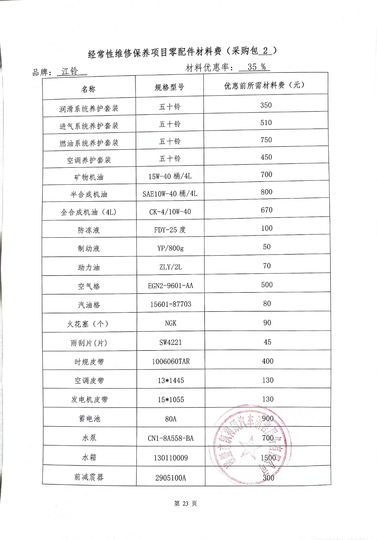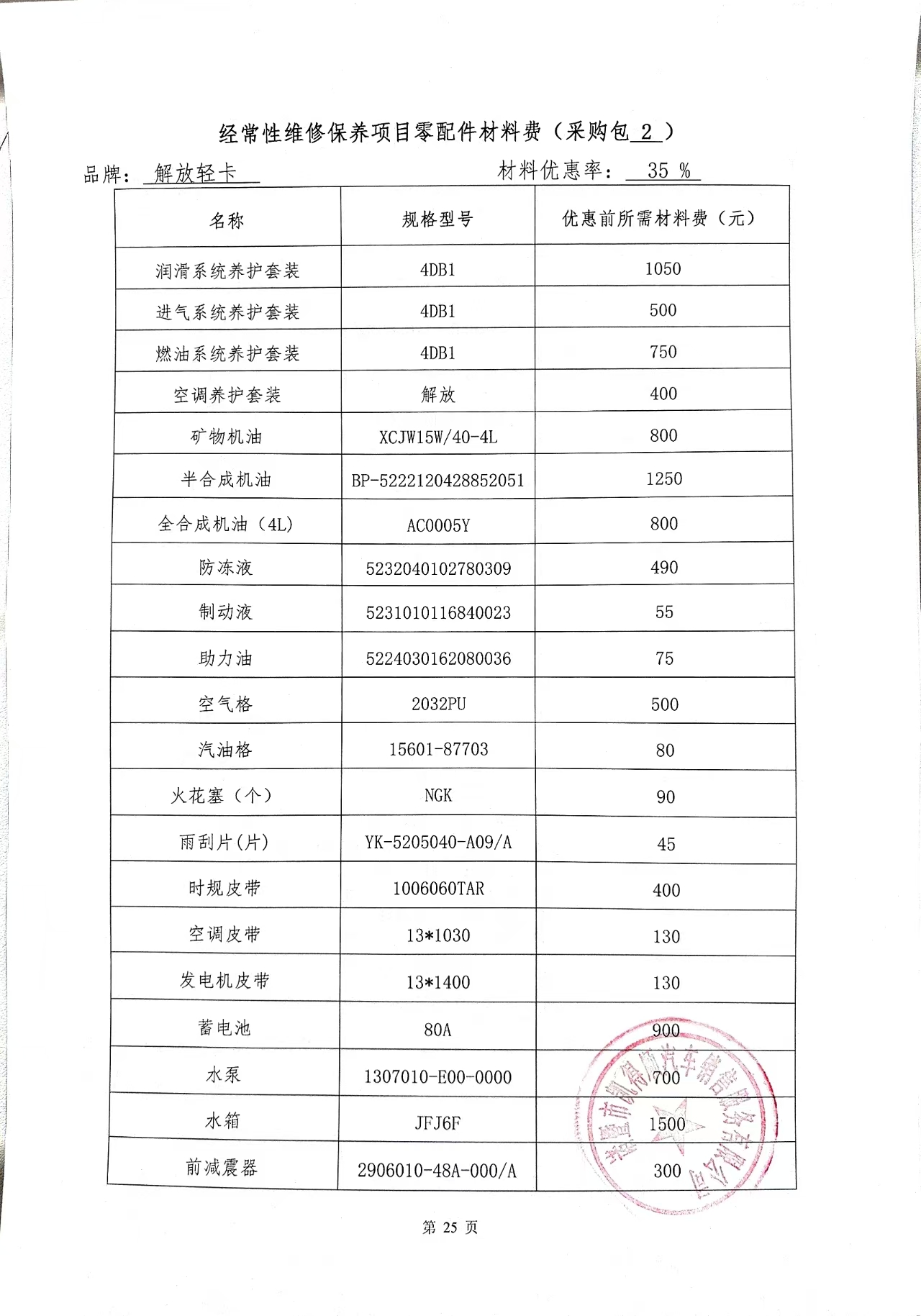 经常性维修保养项目零配件材料费:配件费览表 (*).***