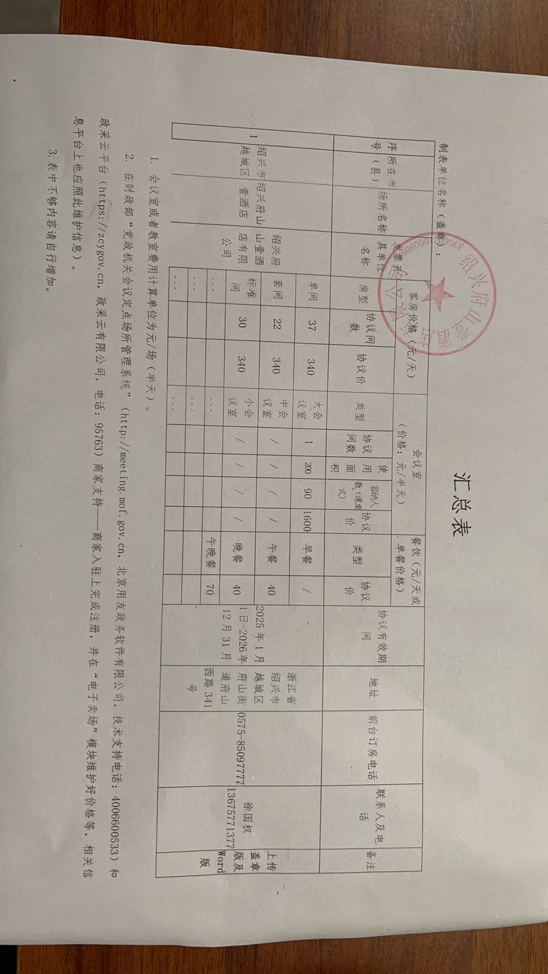 绍兴府山壹酒店有限公司入围2025-2026年度绍兴市会议服务开放式框架协议采购项目的结果公告