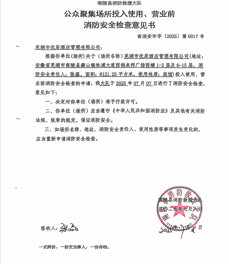 芜湖市优居酒店管理有限公司入围2025-2026年安徽省党政机关会议场所保障服务开放式框架协议采购方案的结果公告