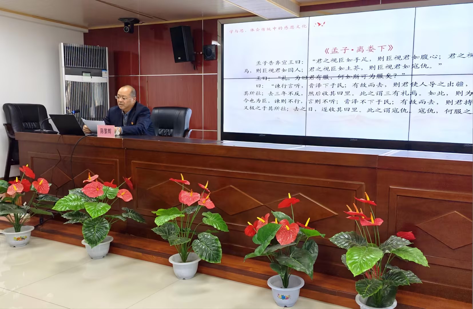 活动伊始,公司党委副书记、工会主席陈黎辉带领全体职工共同学习《孟子》经典篇章,观看展现温暖亲情、真挚友情与互助力量的纪录片,在经典浸润与光影熏陶中,进一步筑牢感恩思想根基。随后,*名职工代表结合自身经历解读经典名篇、分享暖心故事、交流心得体会,用真挚的语言诠释了各自对“感恩”的理解与感悟。他们的分享深深触动了在场职工,让感恩的种子在大家心底生根发芽,也让“感恩”二字从一个抽象的理念变成了可感可知的生动实践。活动通过“悟感恩内涵、承先贤美德、话感恩心路、践感恩之行、扬感恩之声、传美好祝愿”六大环节,环环相扣、层层深入,系统诠释了感恩文化的时代内涵与责任担当,引导广大干部职工实现情感共鸣和精神升华。