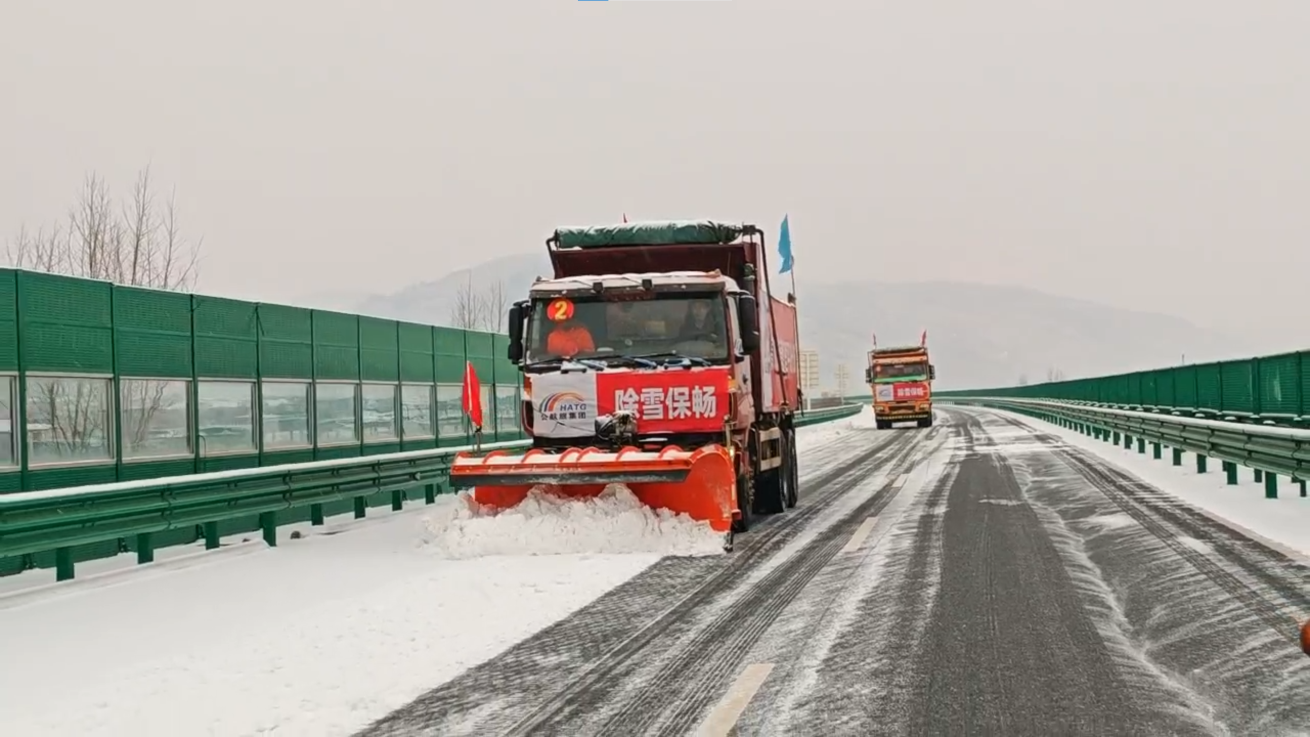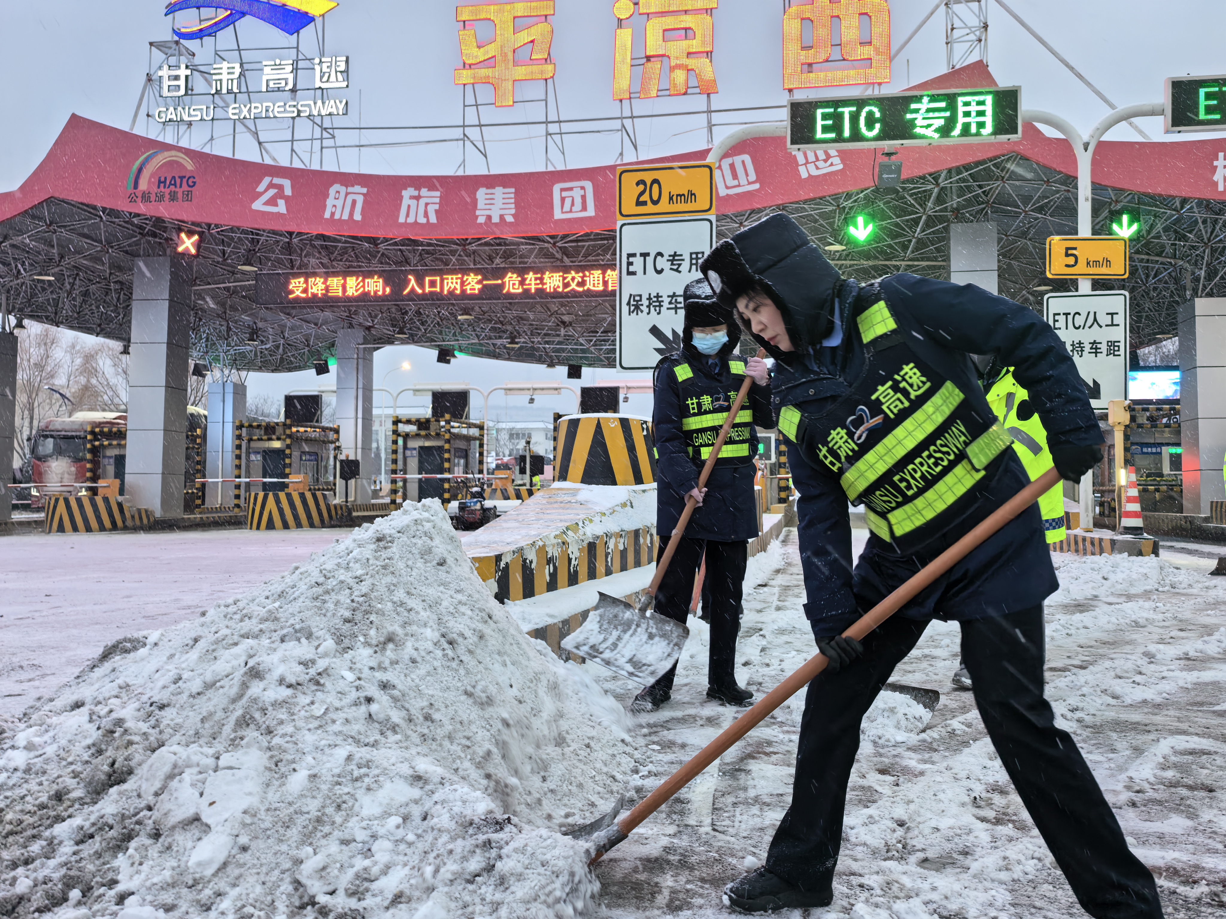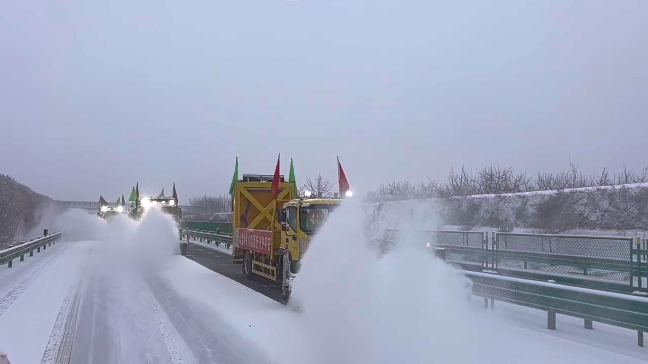 **月**日凌晨,平凉、庆阳地区相继普降中到大雪。面对严峻的冰雪考验,公航旅高速公路运营管理平凉分公司迅速启动应急预案,科学组织、多措并举,昼夜不停开展除雪防滑作业,有力保障辖区路网安全畅通,为公众元旦假期出行提供可靠保障。