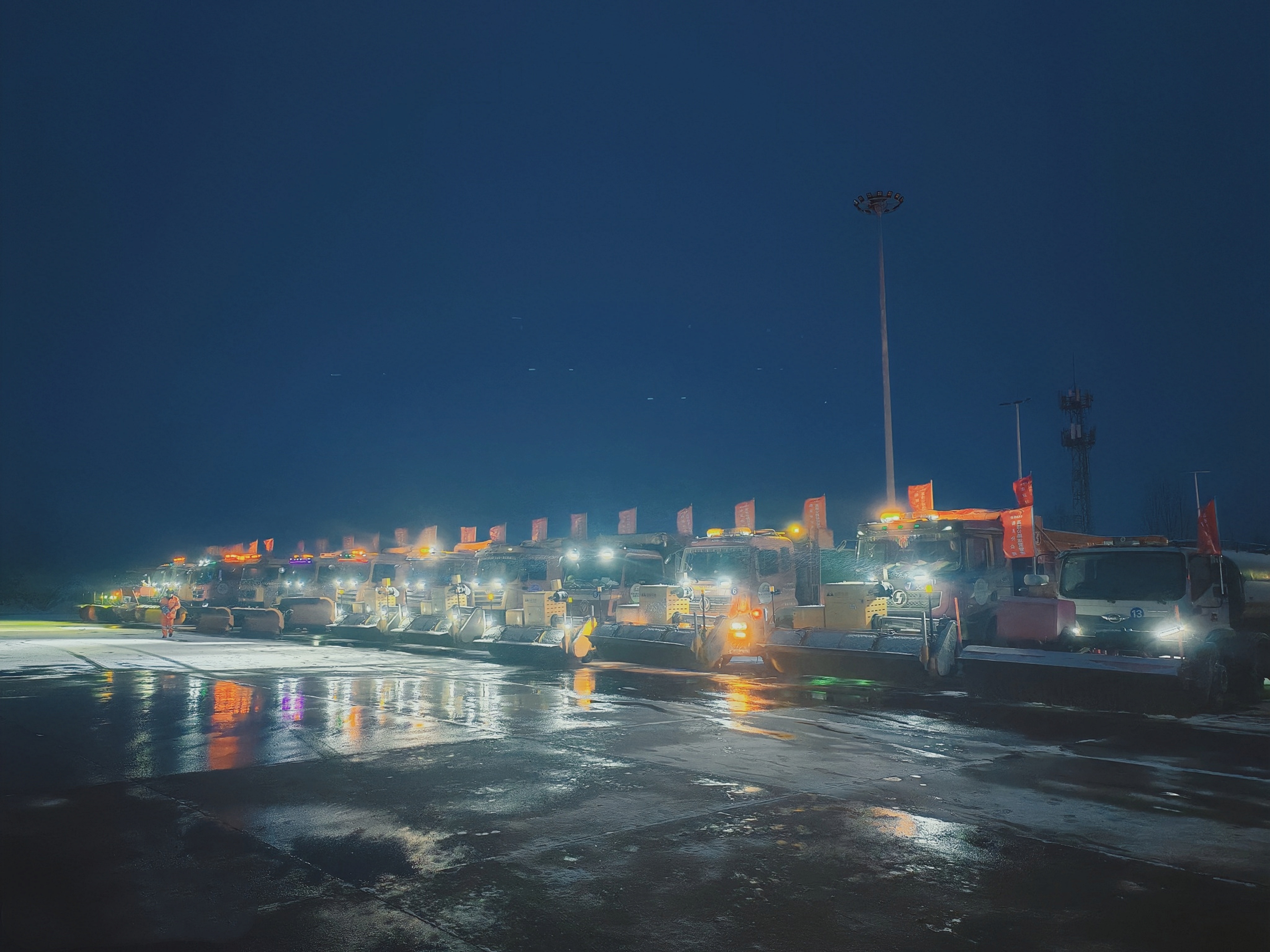 **日凌晨*时——雪已落,黑夜中橙色铁军的“奋勇挺进”