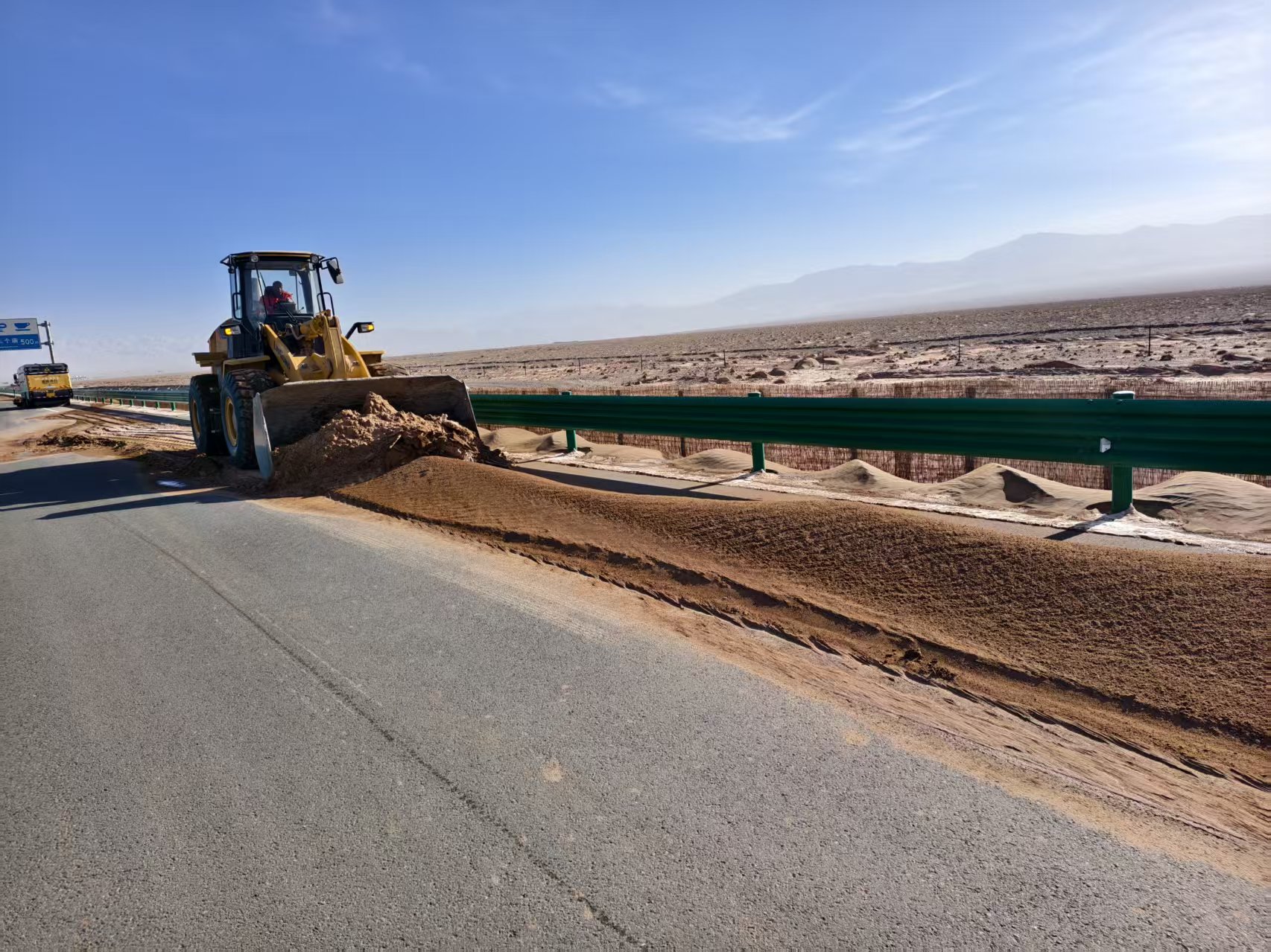 迎“风”而战,全力以赴保畅通。大风裹挟着沙尘席卷而至,部分路段出现积沙和结冰隐患。公司第一时间响应,立即启动应急预案。风沙中,一抹抹忙碌的“橘色”身影格外醒目。他们不顾寒风刺骨,操作机械车辆在风沙中前行,有序开展清沙防滑作业。在急弯、桥面等关键部位撒布防滑料和融雪剂,最大限度减少恶劣天气对公路通行的影响。