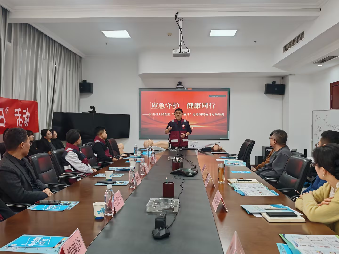 **月**日,国贸公司邀请甘肃省人民医院的专家团队开展“应急守护・健康同行”专场培训,公司领导和全体职工参加。