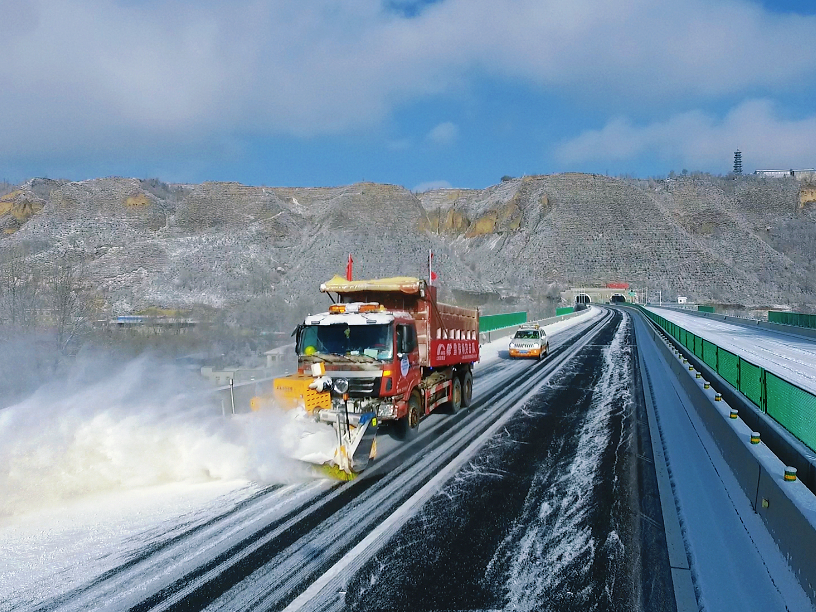 **月**日凌晨,甘肃省境内突降大雪,公航旅高速公路运营管理临夏分公司管辖路段出现不同程度的降雪。临夏分公司迅速响应,积极开展除雪保畅工作,全力保障高速公路安全畅通。