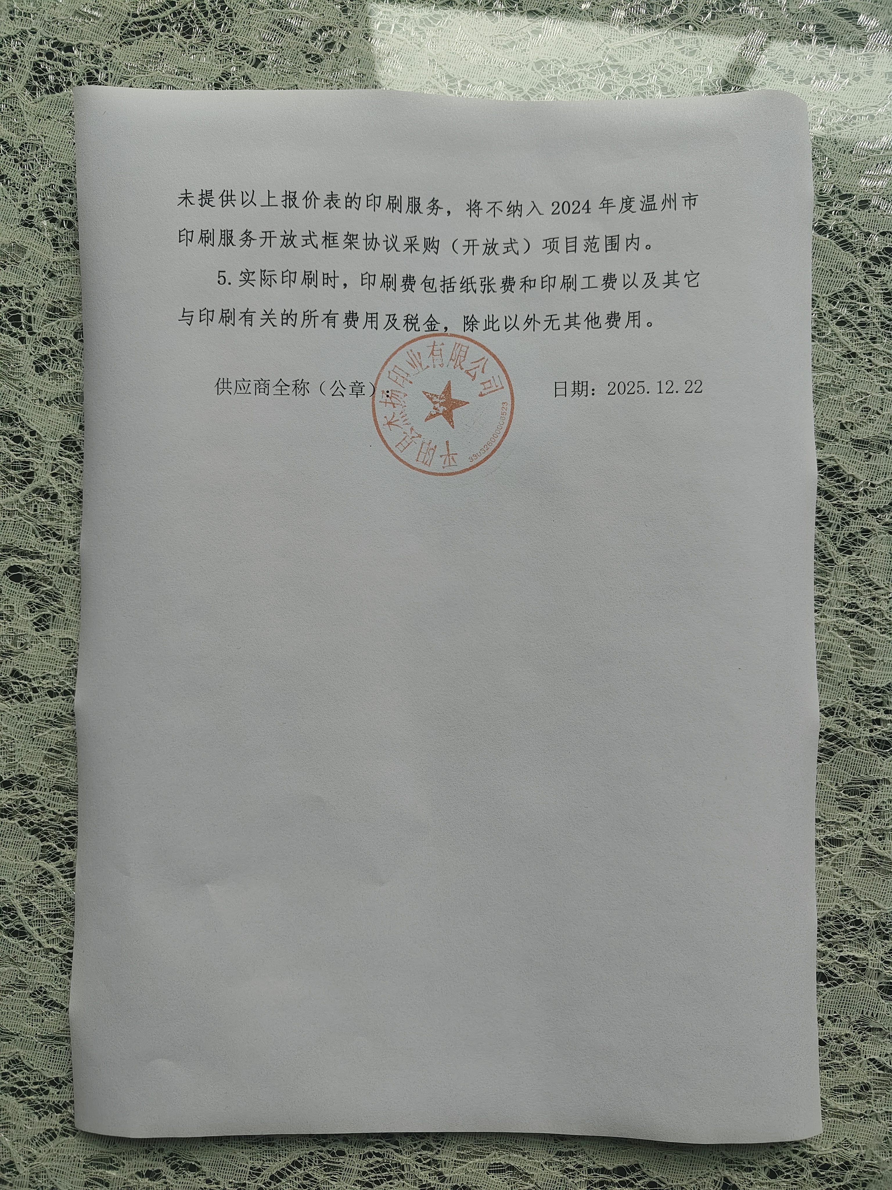 项目名称:****年度温州市印刷服务开放式框架协议采购项目