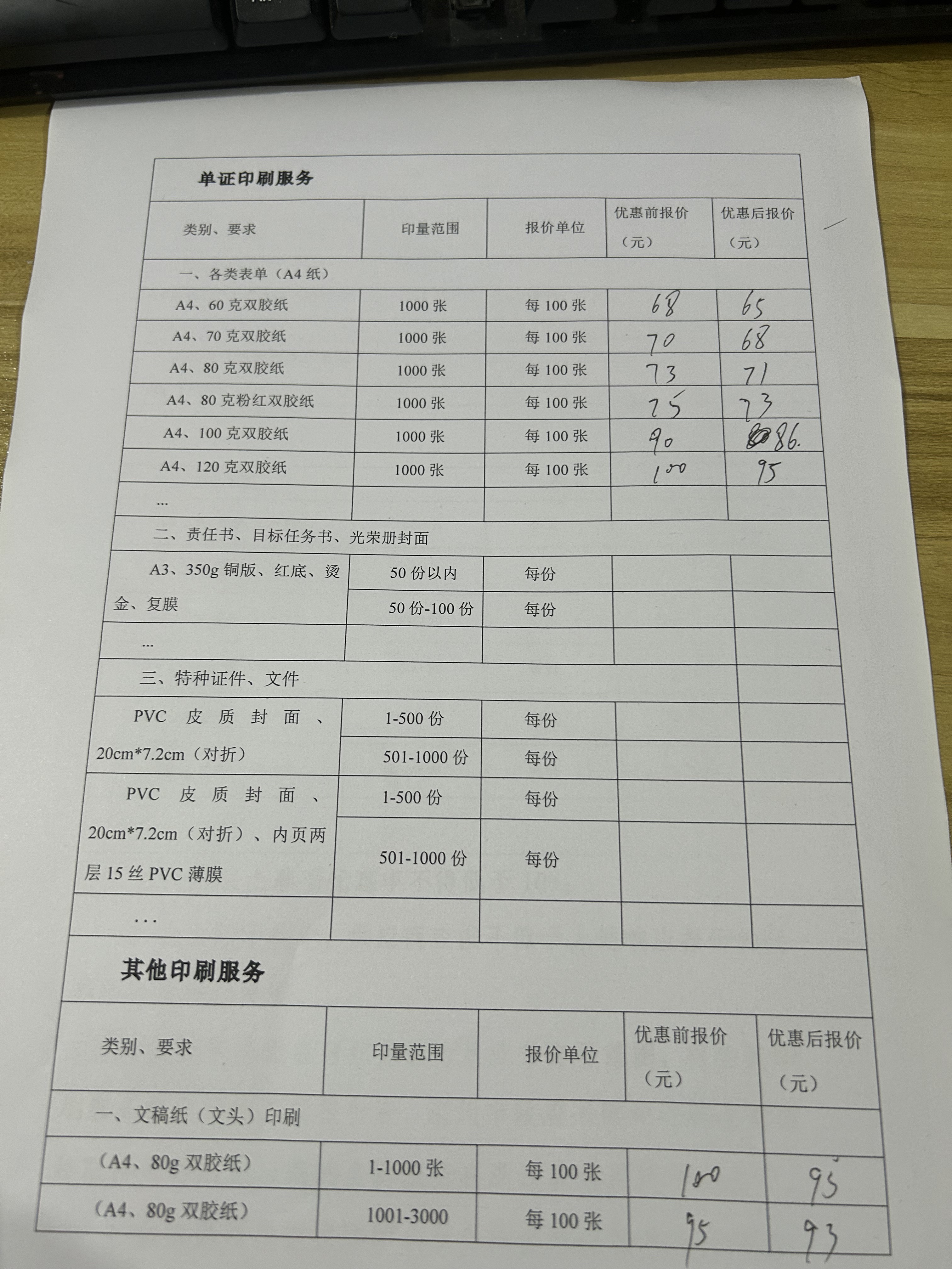 印刷服务(《印刷业管理条例》其他印刷品:可包含且不限于文件、信封、信笺、资料、图表、票证、证件、名片等)