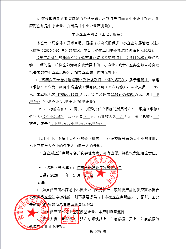 三门峡市湖滨区高庙乡人民政府高庙乡穴子仓村道路硬化及护坡项目-成交公告