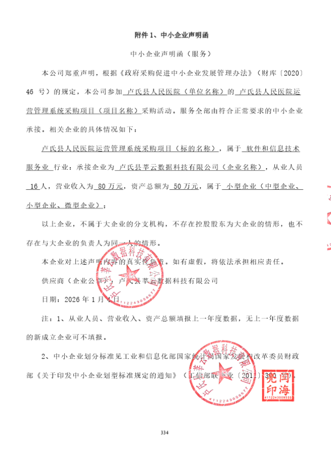 | *、采购项目名称:卢氏县人民医院运营管理系统采购项目 | |||||||||||||||||||||||||||||||