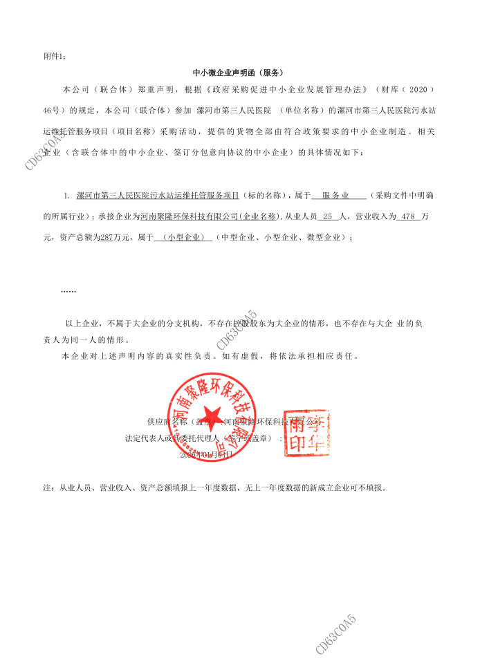 | *、采购项目名称:漯河市第三人民医院污水站运维托管服务项目 | |||||||||||||||||||||||||||||||