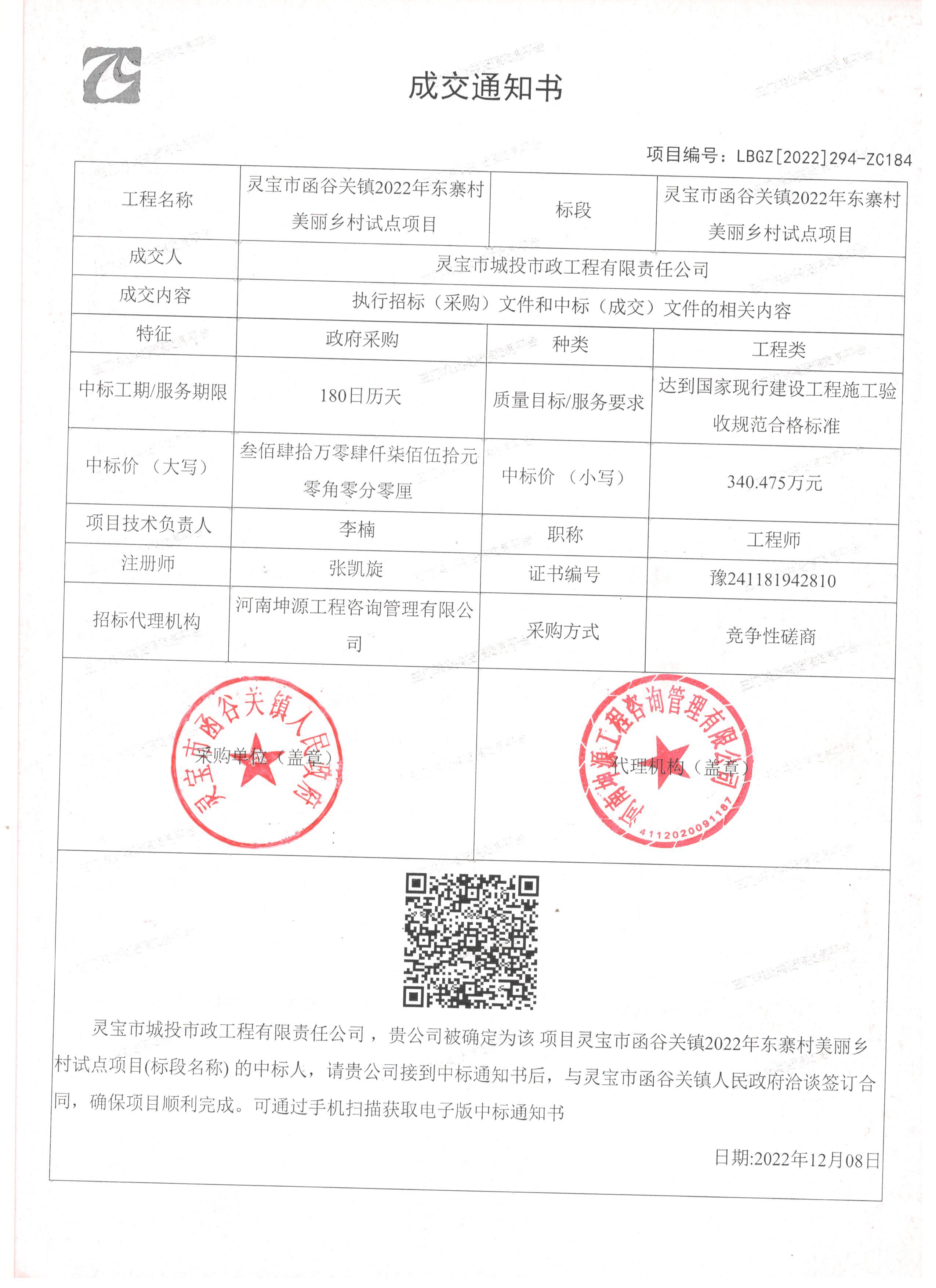 河南/三门峡 中标结果