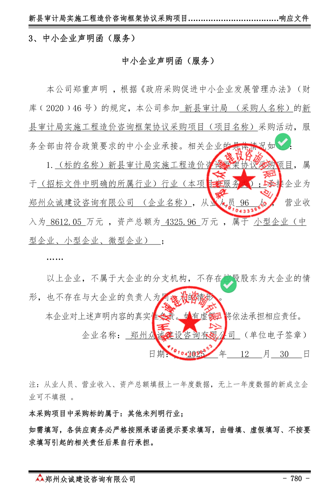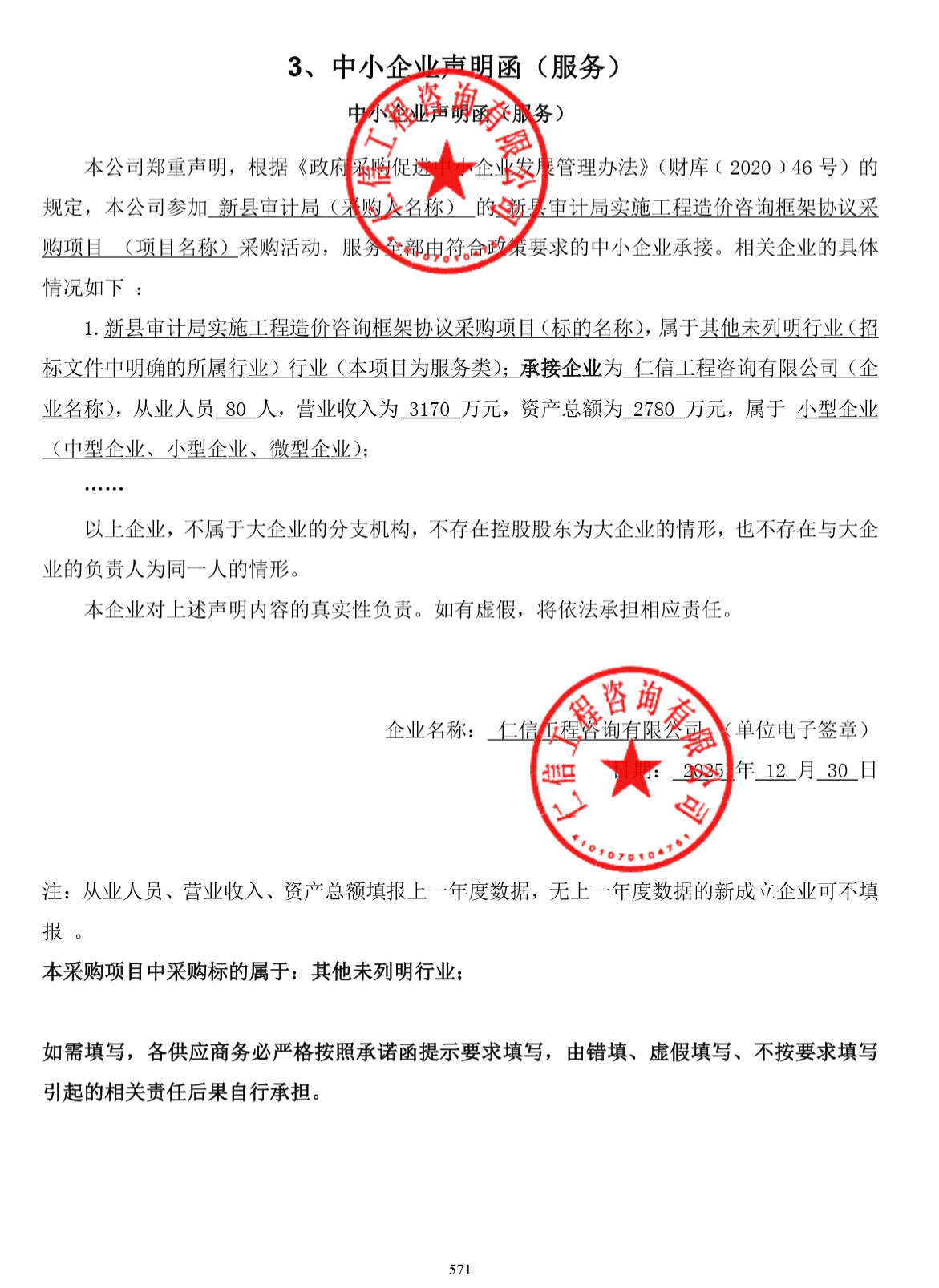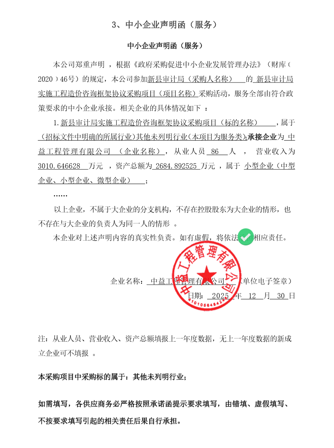 | *、采购内容:采取政府采购框架协议的形式选聘**家工程造价咨询公司,在采购人的监督下参与政府投资项目决算审计工作(具体详见招标文件内容); *、采购数量:预采购**家; *、服务要求:符合国家、行业现行相关要求和标准达到合格且满足采购人要求; *、框架协议期限:三年(期满后原则上进行重新采购,也可以根据本次选聘社会造价咨询公司的工作效率、服务质量等因素综合评价其履职能力,对优秀的社会造价咨询公司报县政府批准后可续签)。 | |||||||||||||||||||||||||||||||||||||||||||||||||||||||||||||||||||||||||||||||||||||||||||||||||||||||||||||||||||||||||||||||||||||||||||||||||||||||||||||||||||||||||||||||||||||||||||||||||||||||||||||||||||||||||||||||||||||||||||||||||||||||||||||||||||||||||||||||||||||||||||||||||||||||||||||||||||||||||||||||||||||||||||||||||||||||||||||||||||||||||||||||