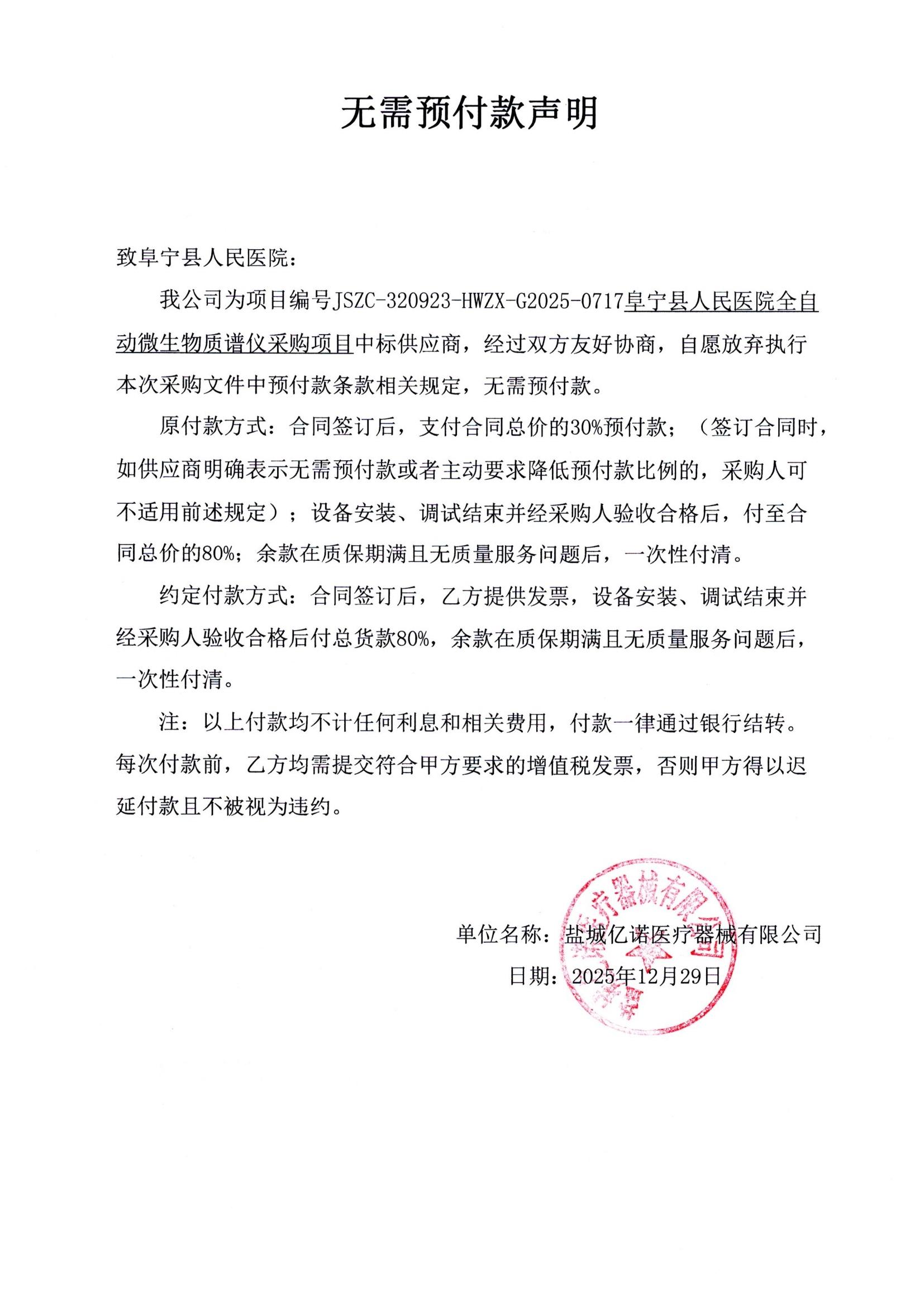 二、合同名称:阜宁县人民医院全自动微生物质谱仪项目合同