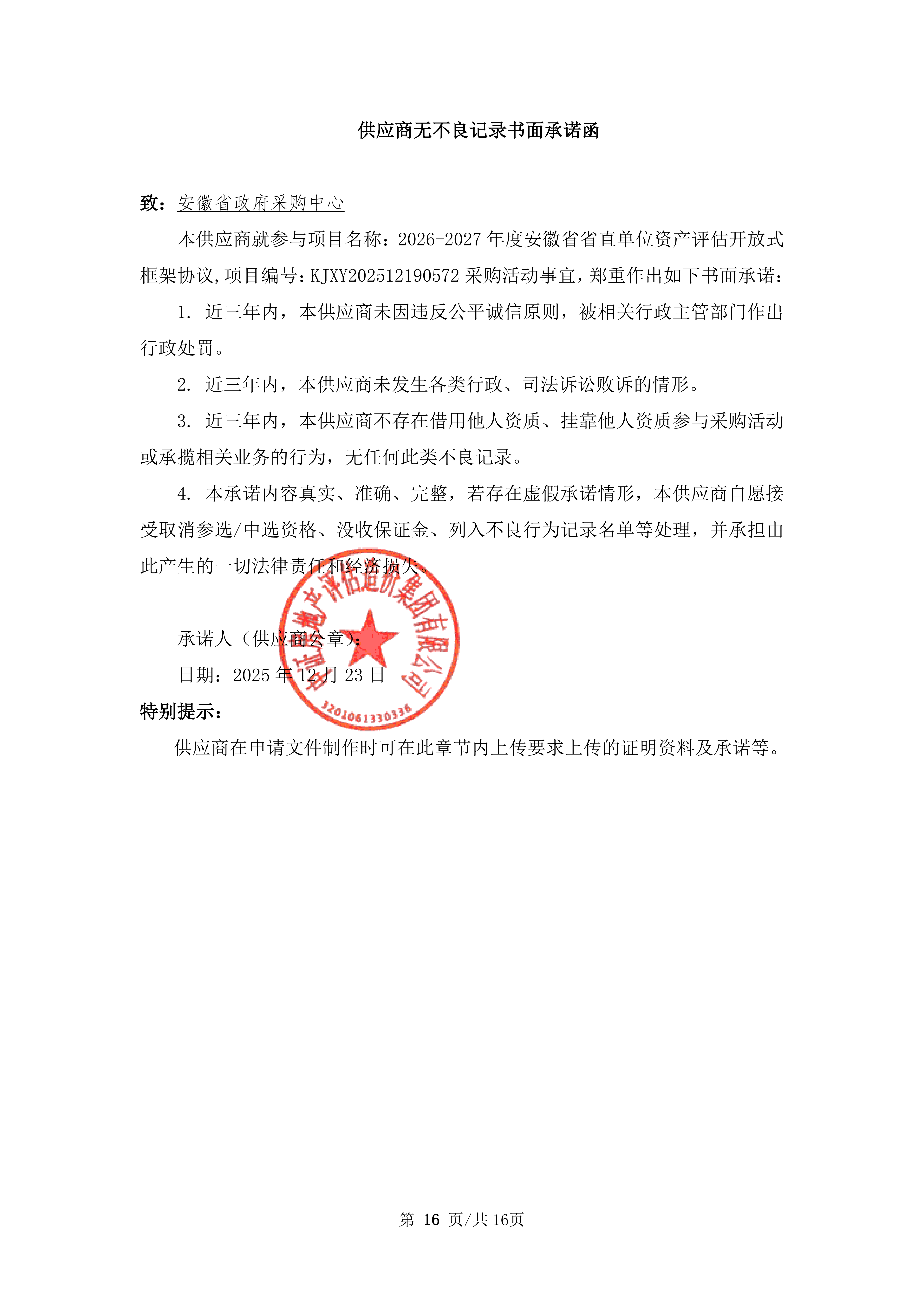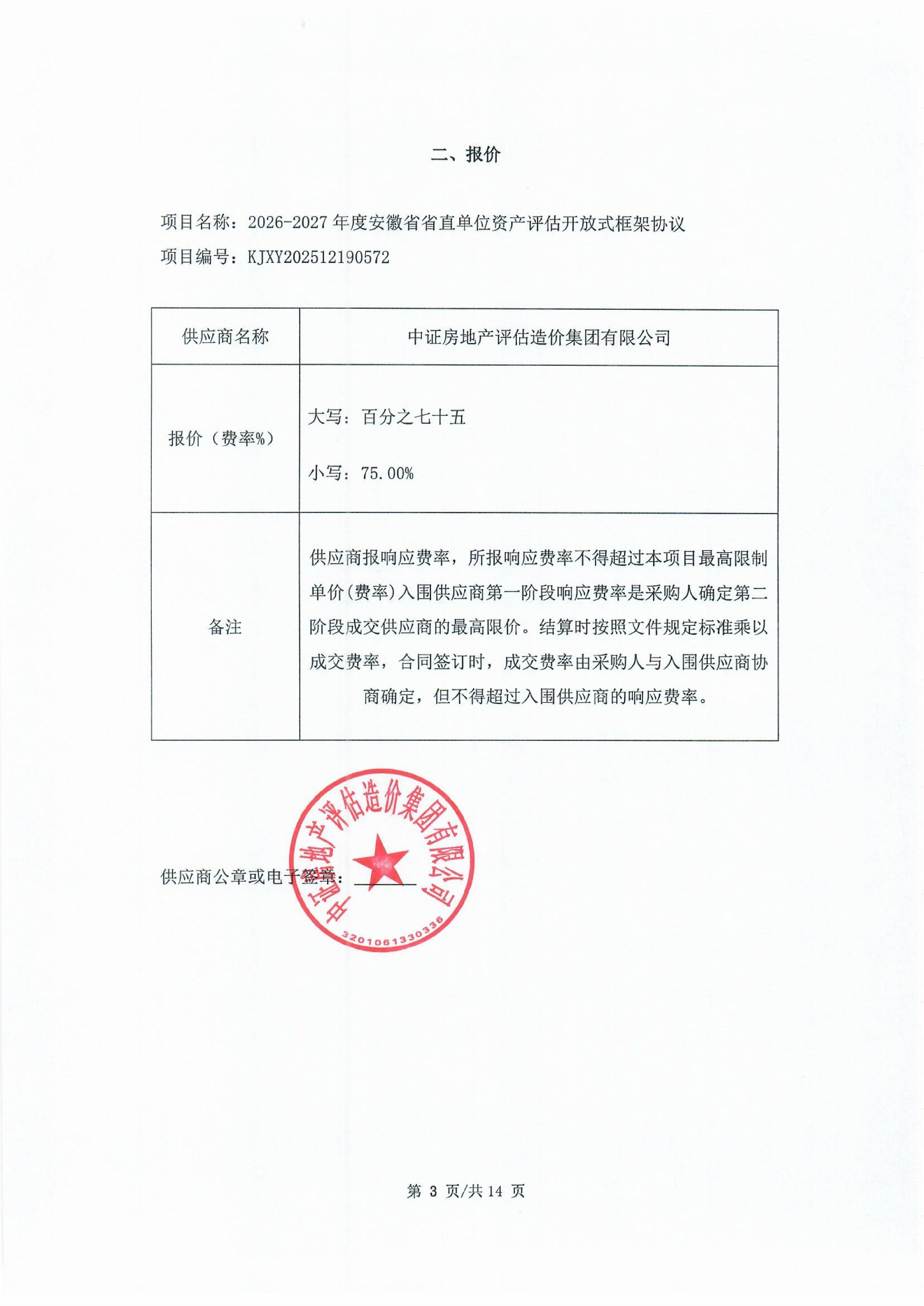 中证房地产评估造价集团有限公司入围2026-2027年度安徽省省直单位资产评估开放式框架协议的结果公告