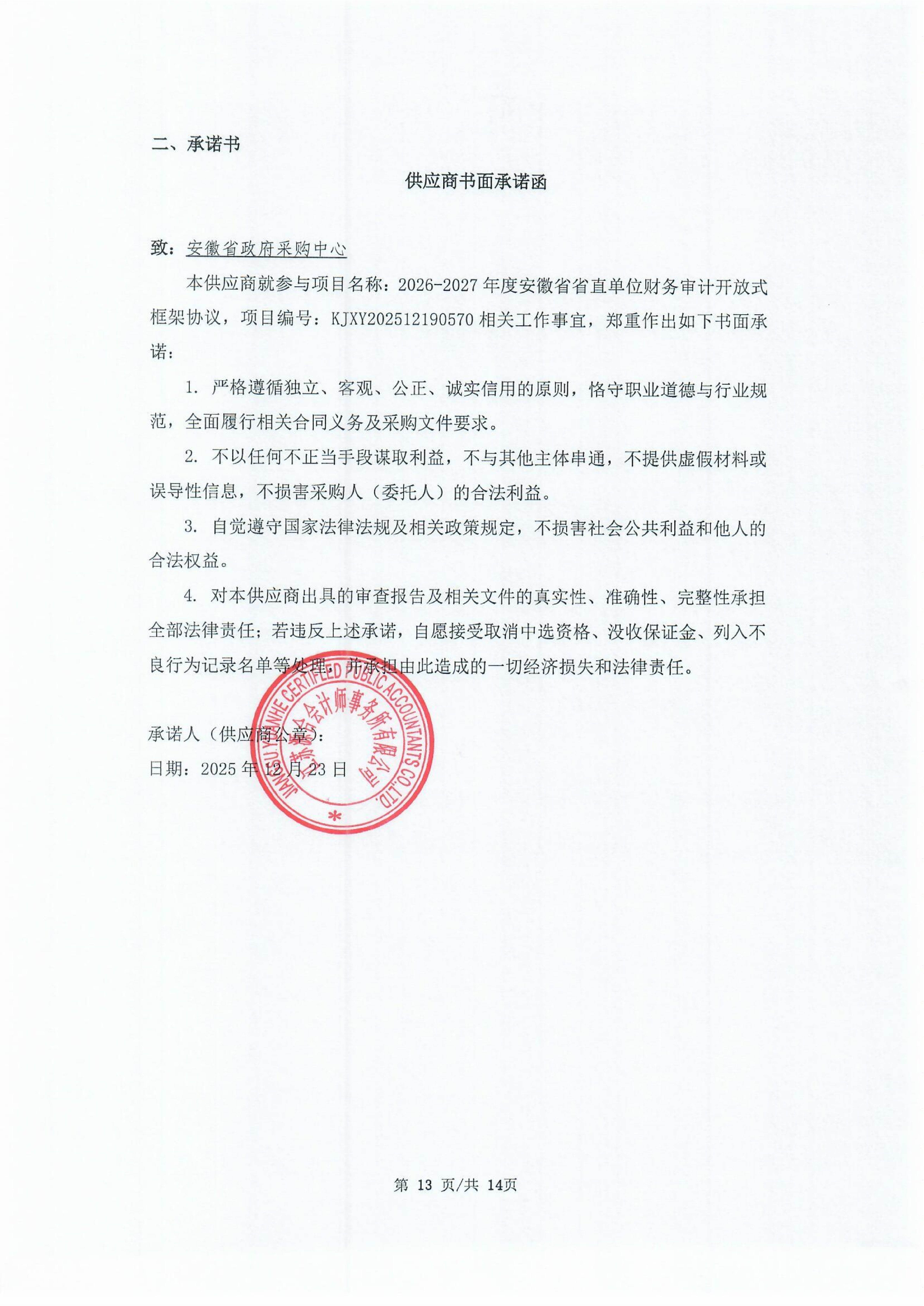 江苏源合会计师事务所有限公司*********年度安徽省省直单位财务审计开放式框架协议