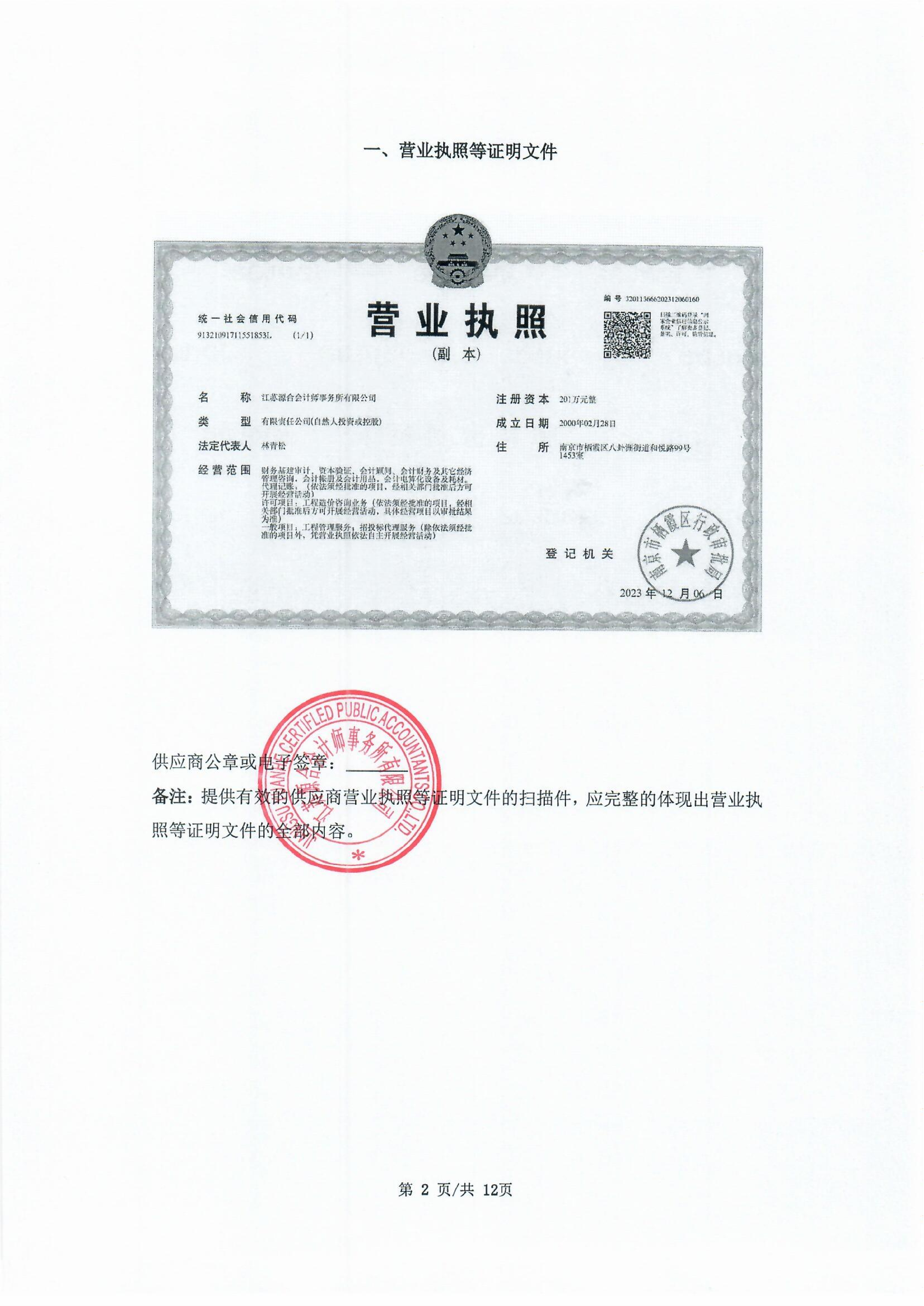 供应商名称:江苏源合会计师事务所有限公司