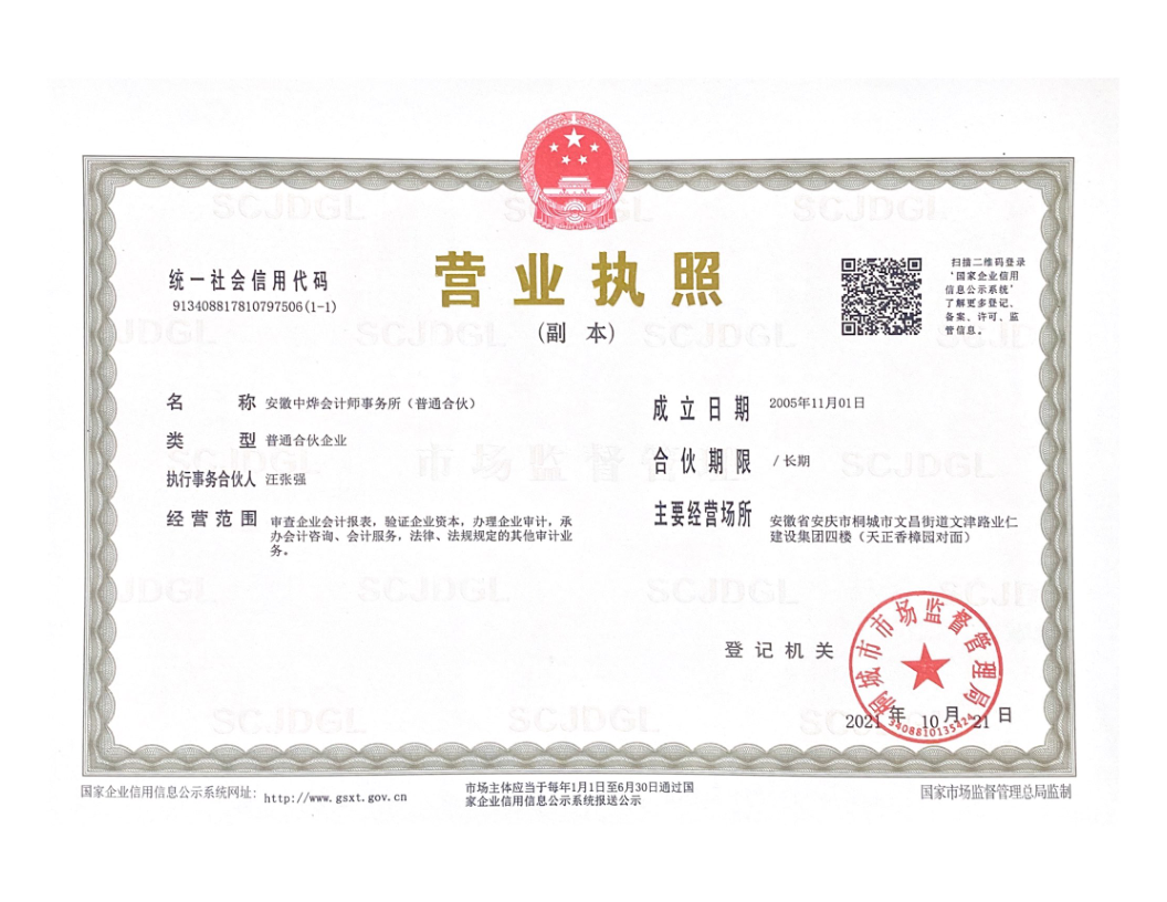 供应商名称:安徽中烨会计师事务所(普通合伙)