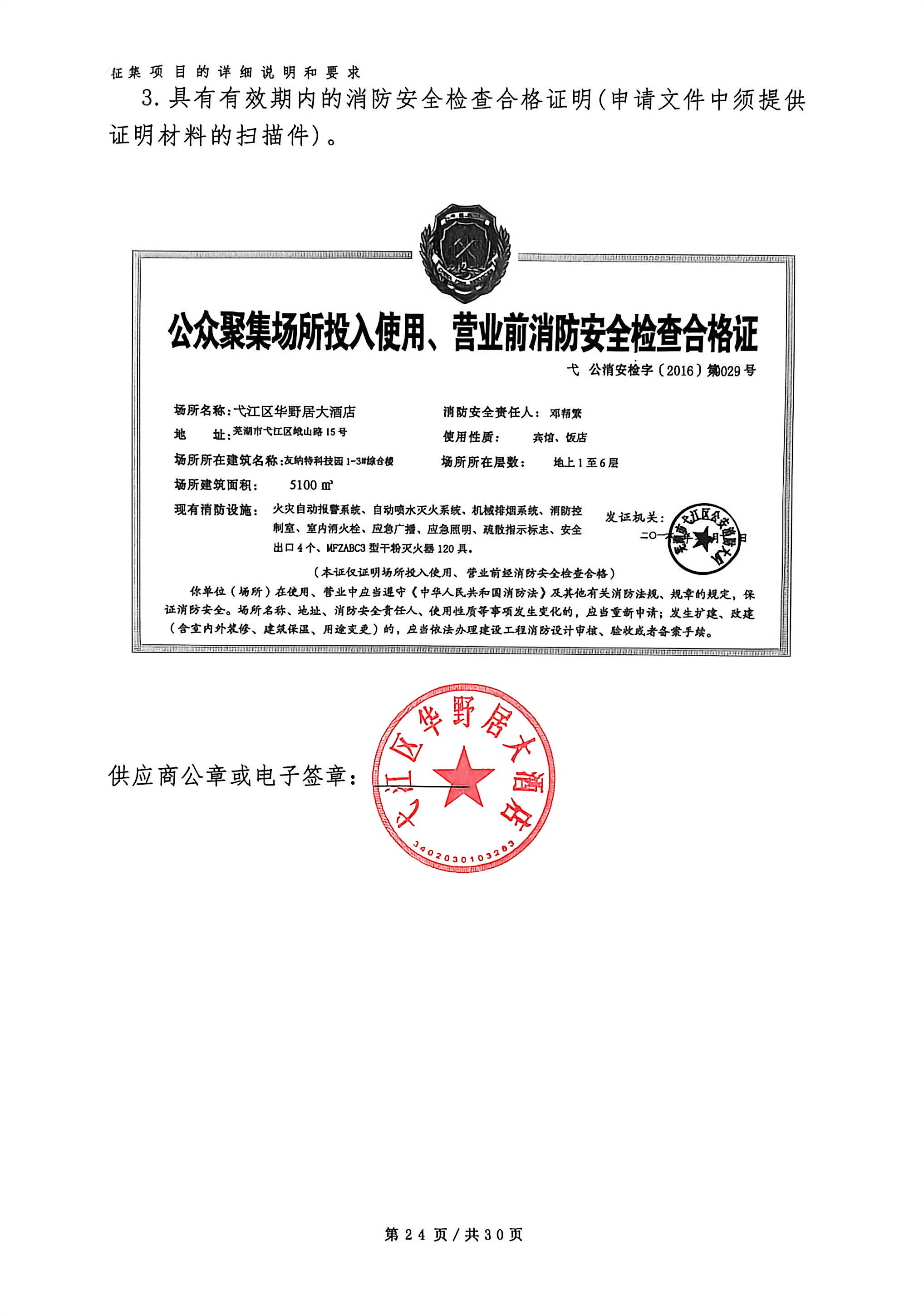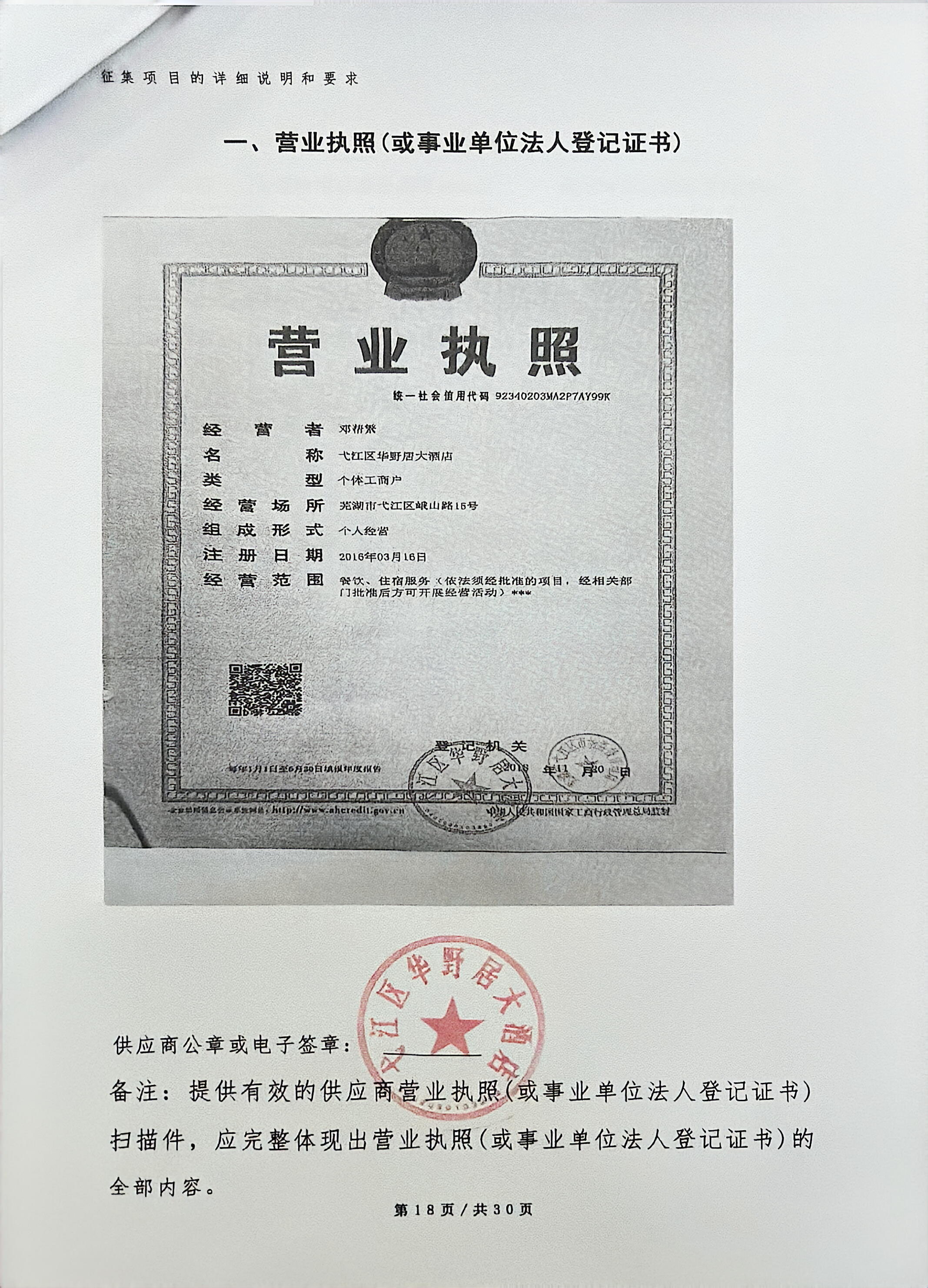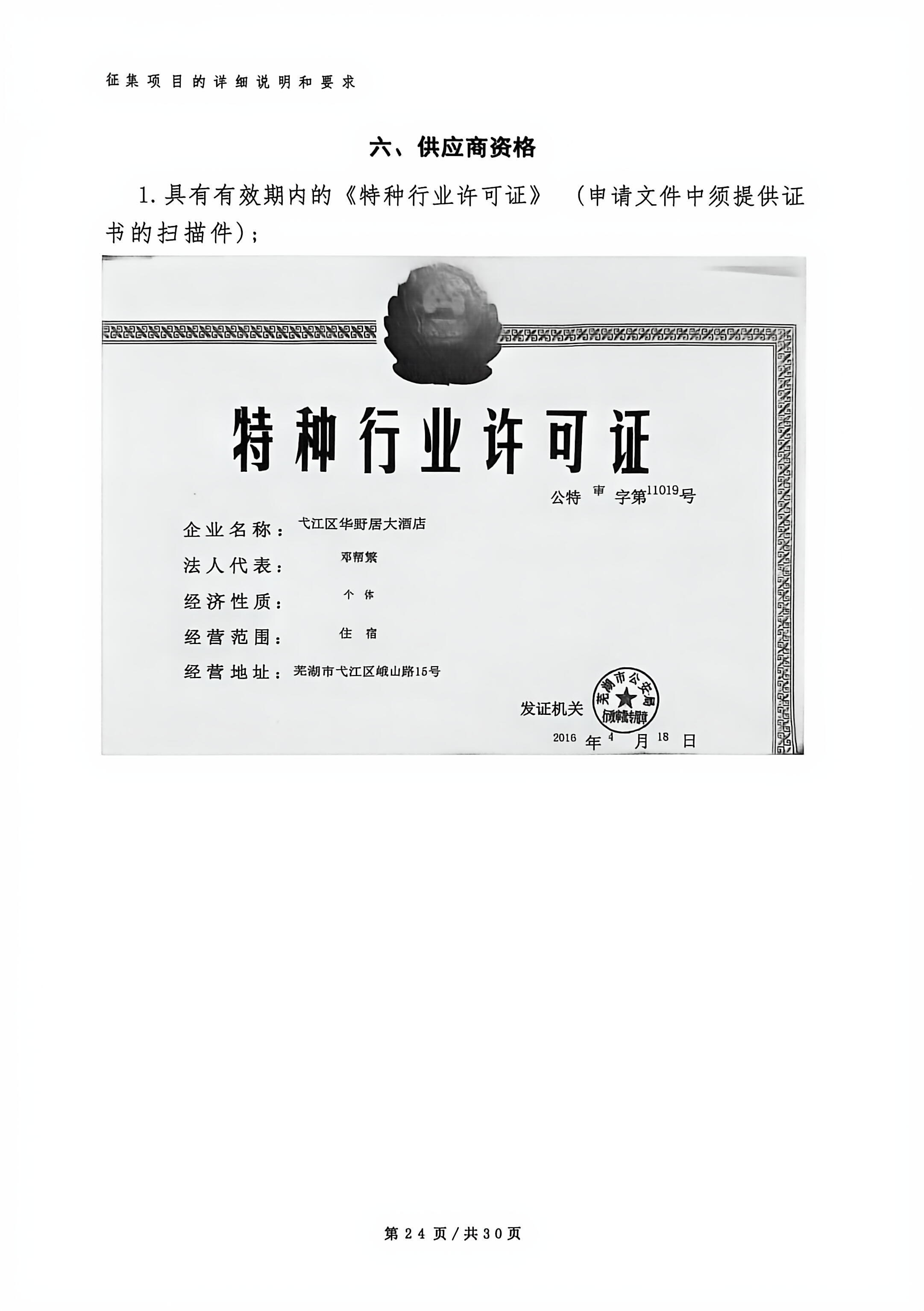 供应商名称:弋江区华野居大酒店