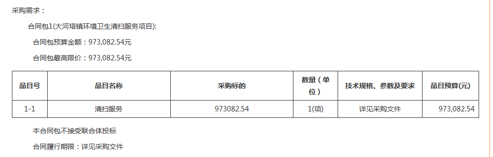 | *** | 清扫服务 | ******.** | *(项) | 详见采购文件 | ***,***.** |
