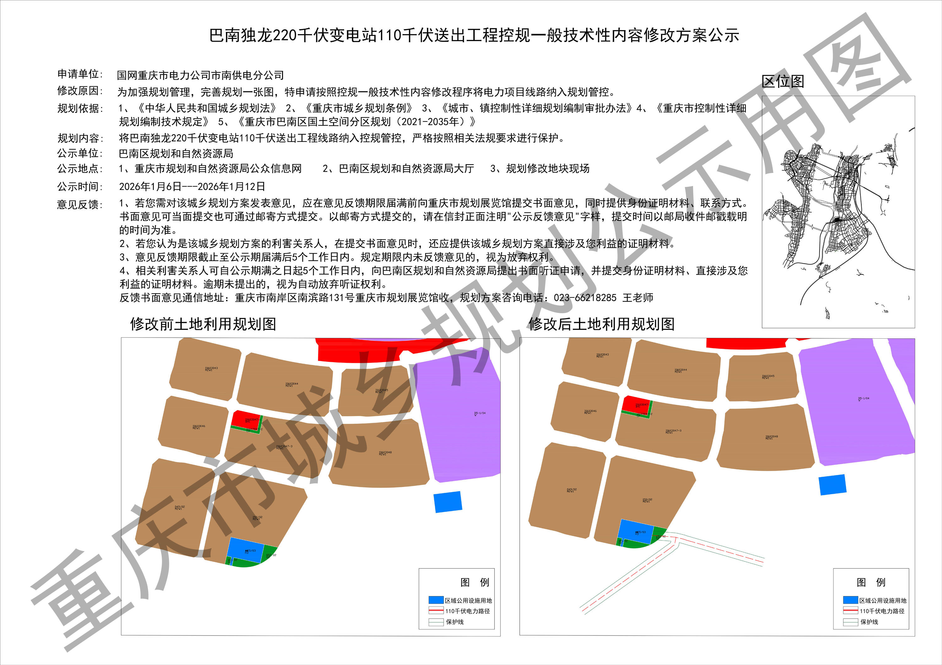 巴南独龙***千伏变电站***千伏送出工程控规一般技术性内容修改方案公示