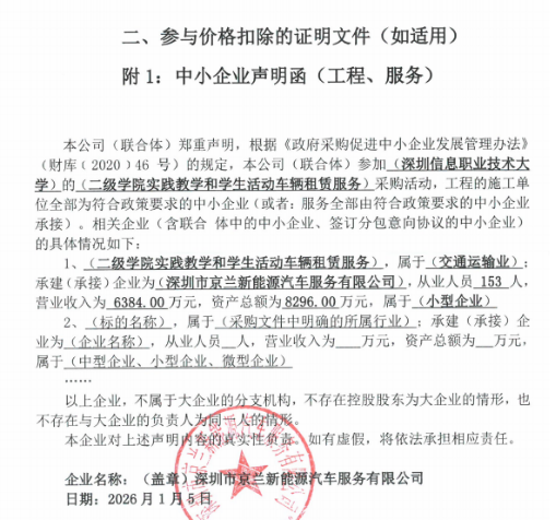 *.供应商名称:深圳市京兰新能源汽车服务有限公司