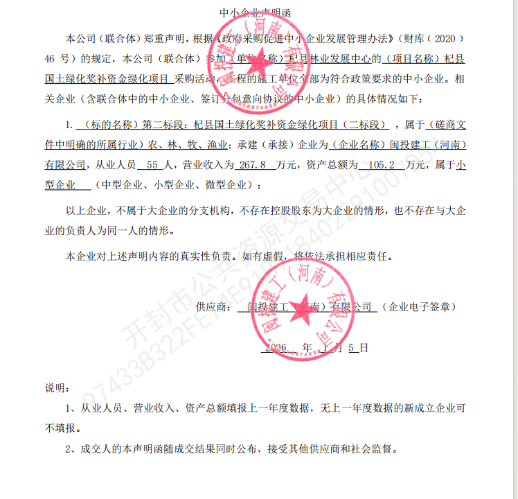 杞县国土绿化奖补资金绿化项目(第二标段)成交公告