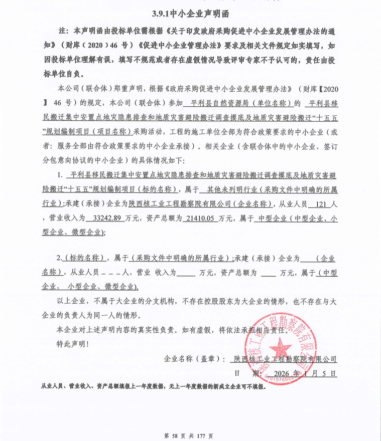 平利县移民搬迁集中安置点地灾隐患排查和地质灾害避险搬迁调查摸底及地质灾害避险搬迁“十五五”规划编制项目中标(成交)结果公告