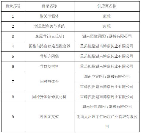 湖南省第二人民医院(湖南省脑科医院)骨科(第二次)医用耗材入围遴选项目结果公示