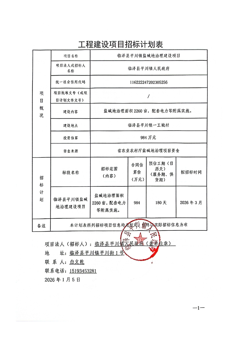 | 招标项目名称 | 临泽县平川镇盐碱地治理建设项目 | ||