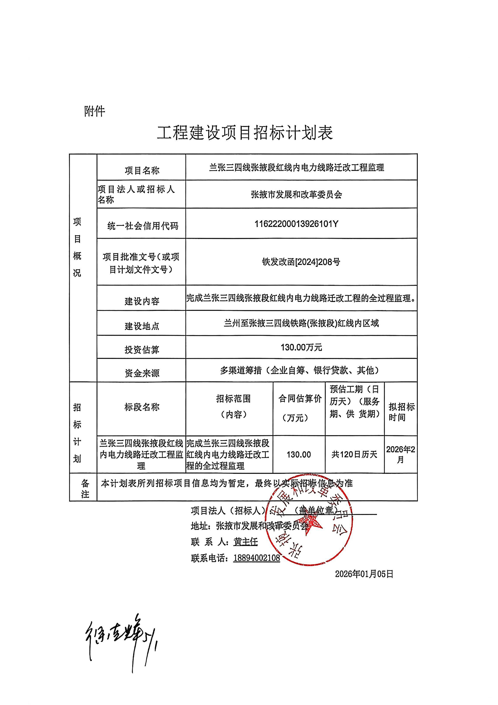 兰张三四线张掖段红线内电力线路迁改工程监理招标计划