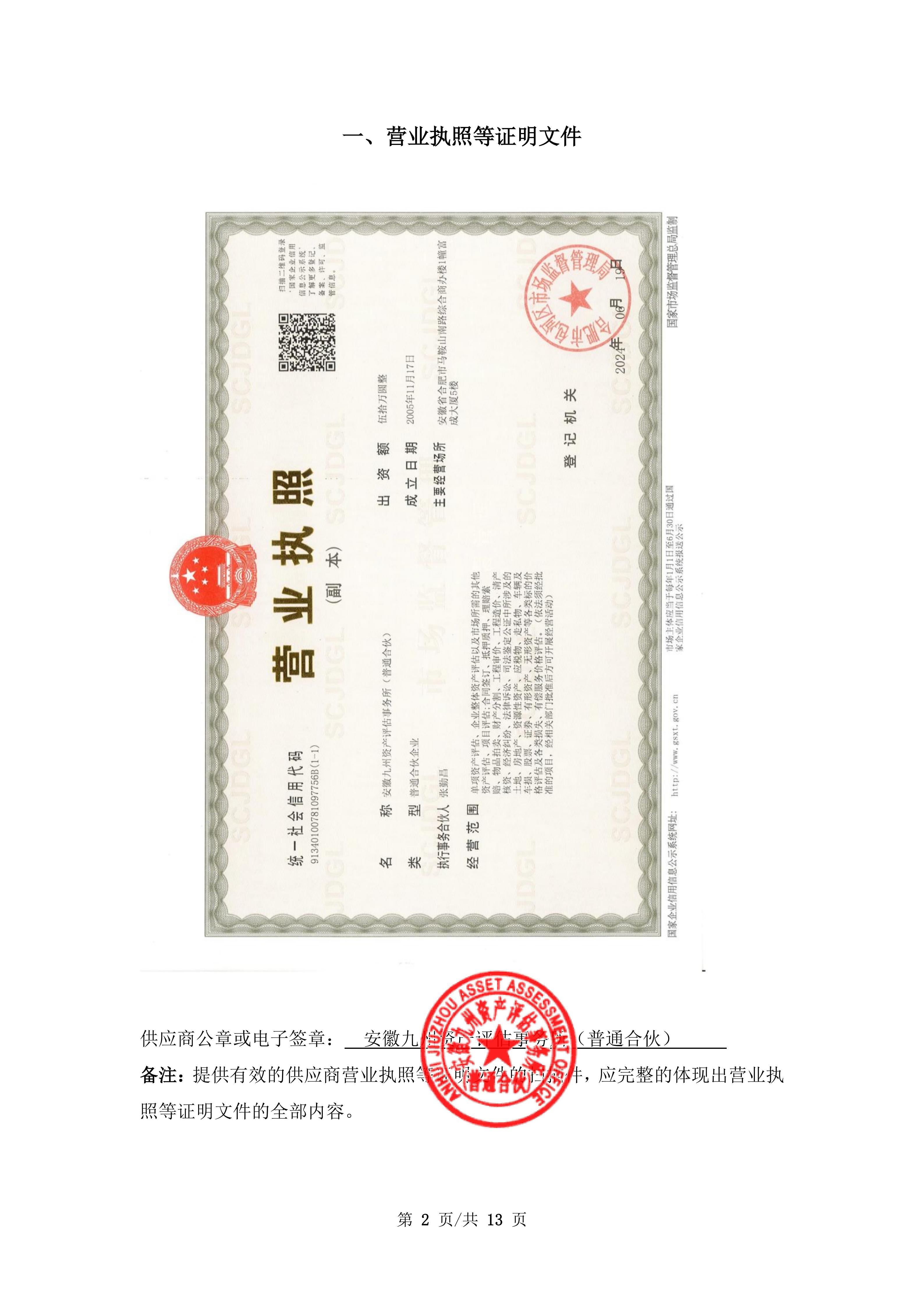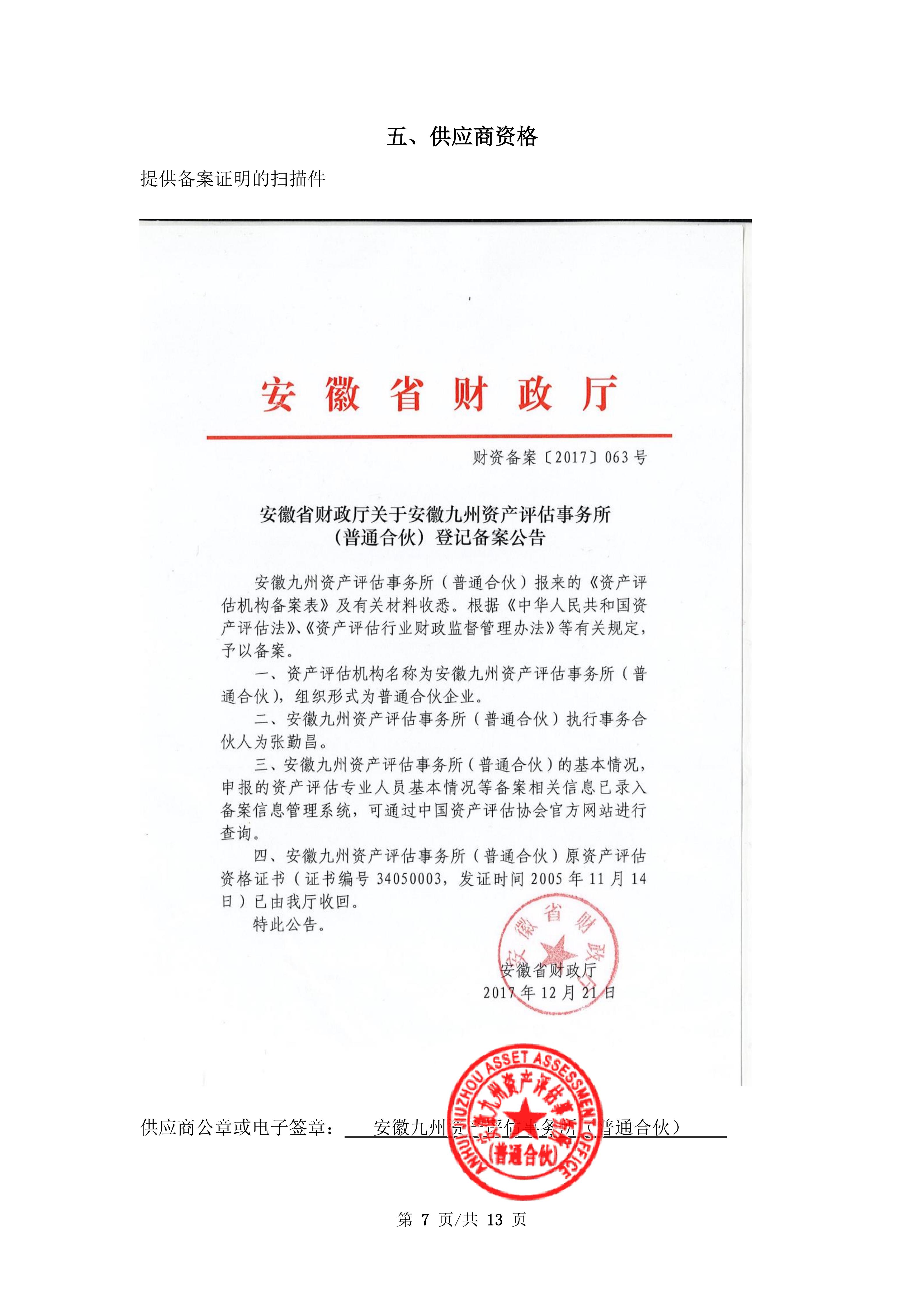 供应商名称:安徽九州资产评估事务所(普通合伙)