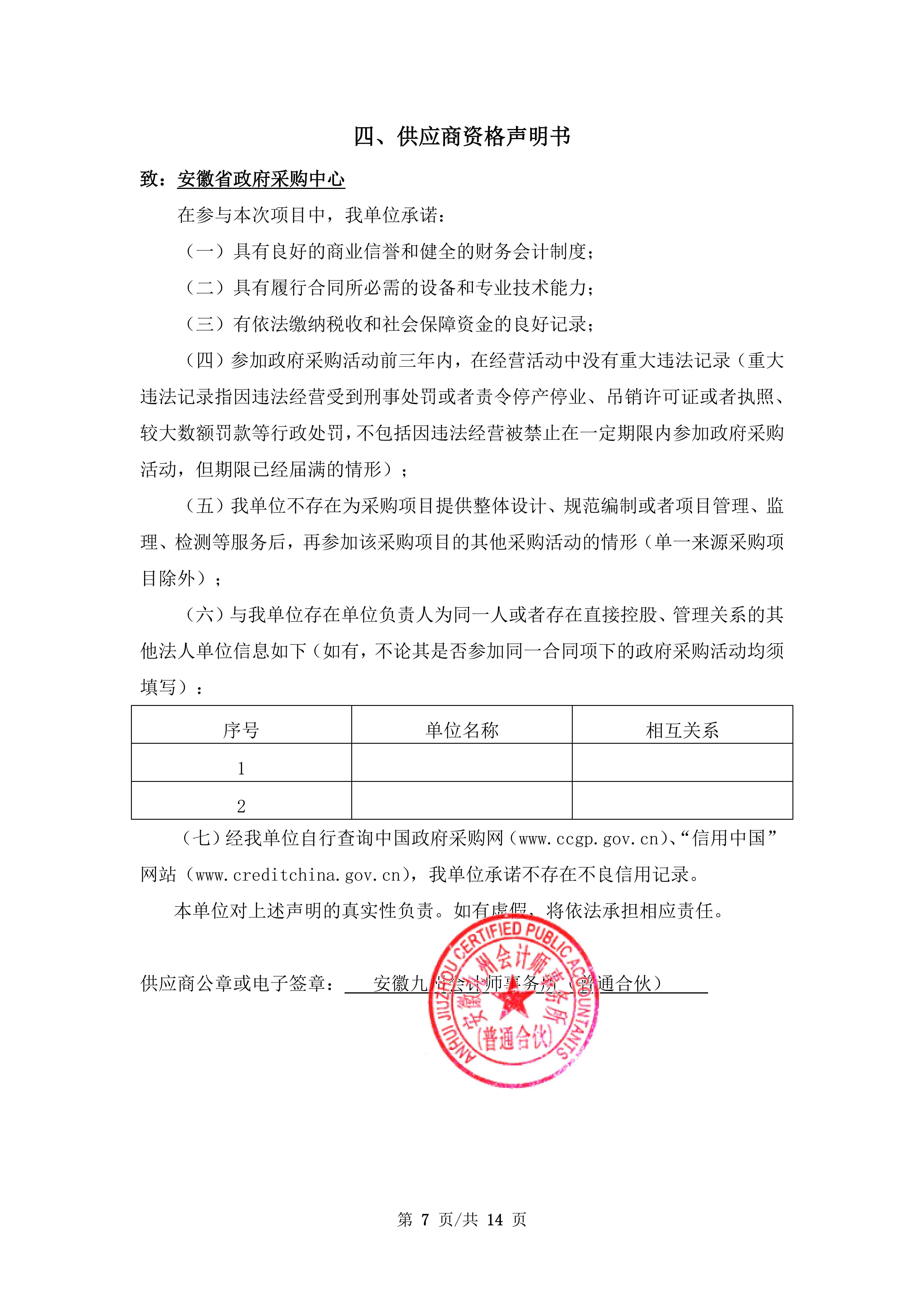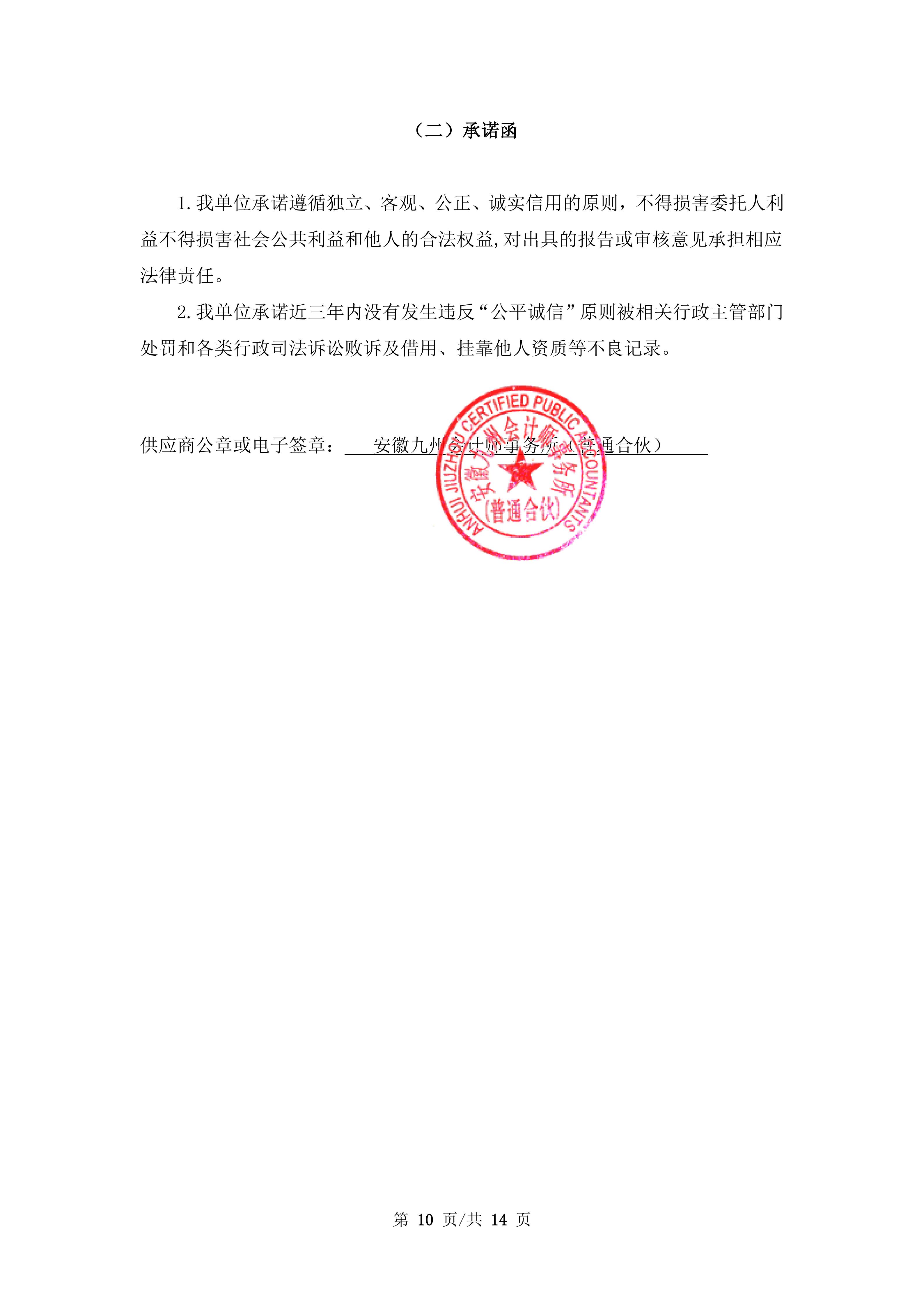 供应商名称:安徽九州会计师事务所(普通合伙)